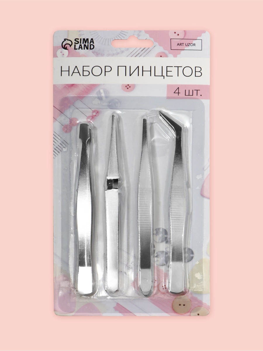 Набор пинцетов для рукоделия, 11.7/12.3/11.2/11.9, цвет серебряный