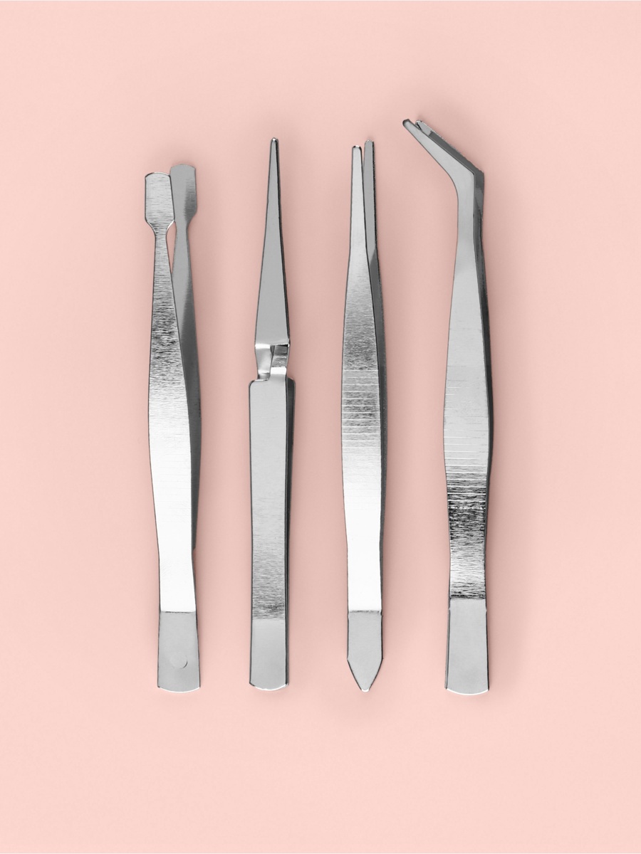 Набор пинцетов для рукоделия, 11.7/12.3/11.2/11.9, цвет серебряный.