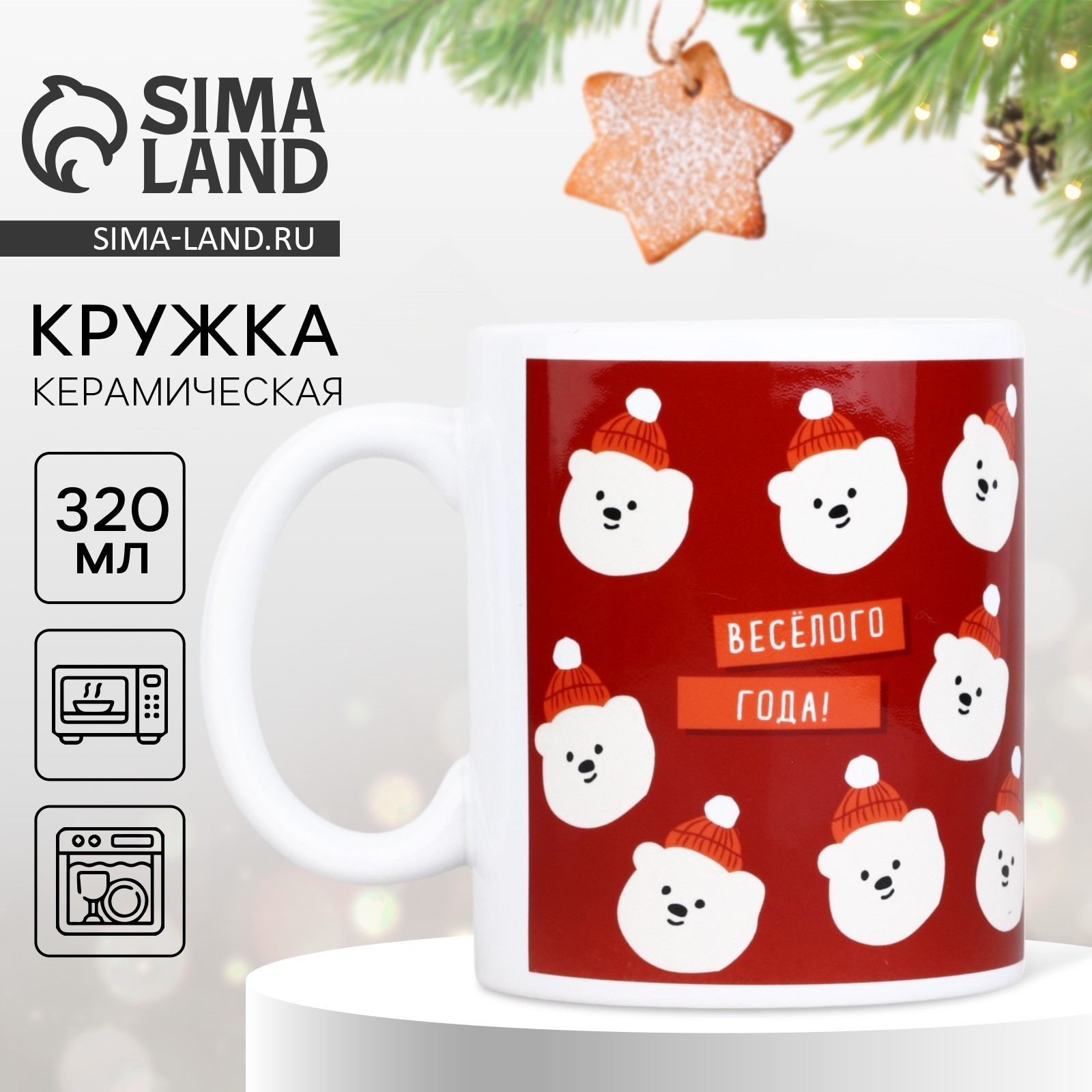 Новый год. кружка белая керамическая «мишка», 320 мл