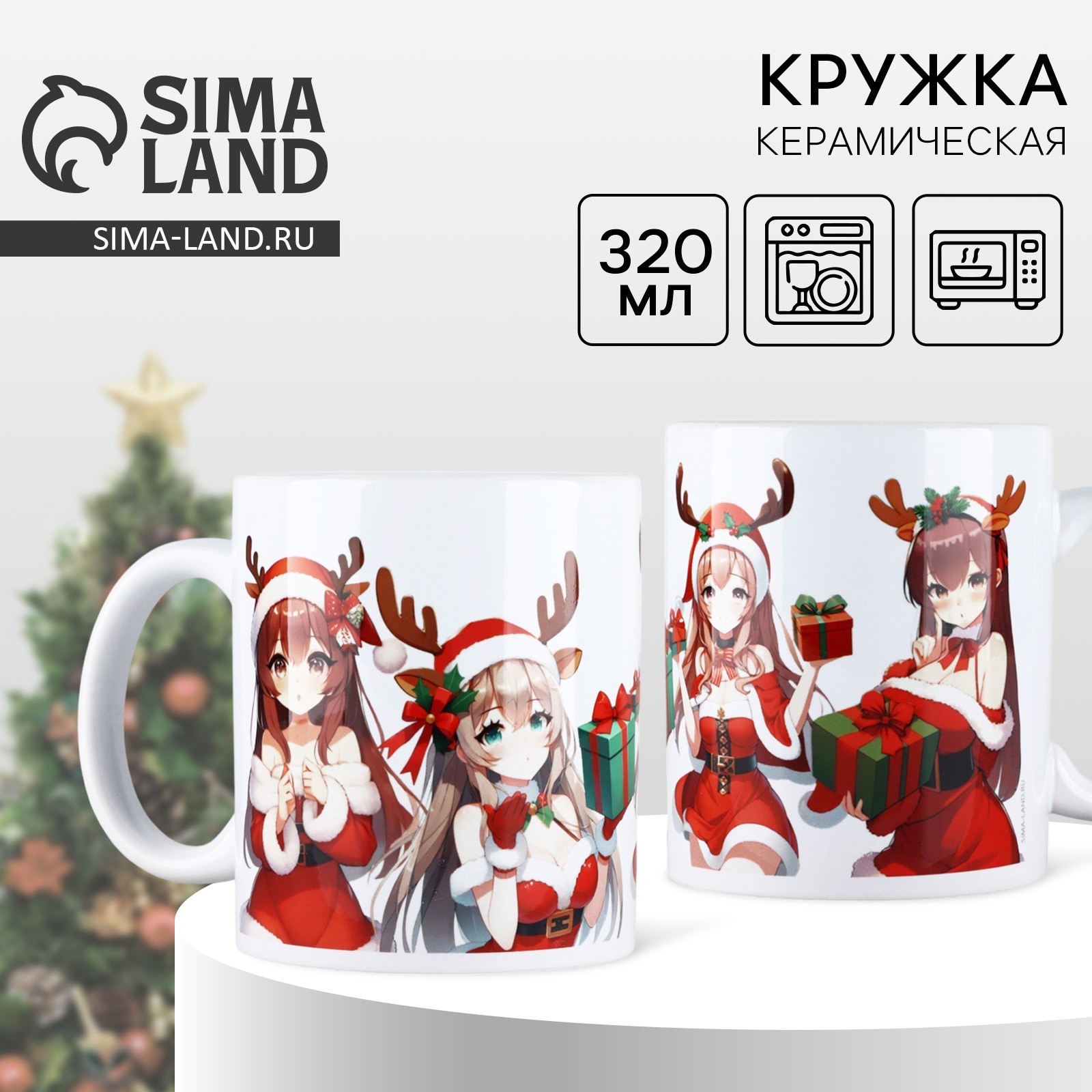 Кружка керамическая «новогоднее аниме», 320 мл, цвет белый