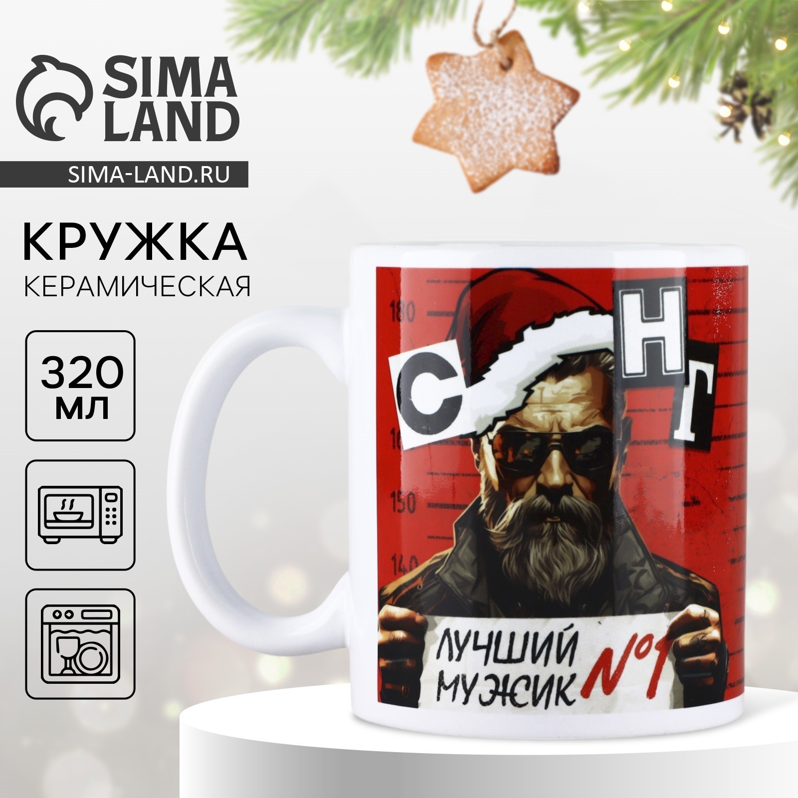 Кружка новый год, керамическая «новогодняя коллекция: мужской новый год», 320 мл, цвет белый