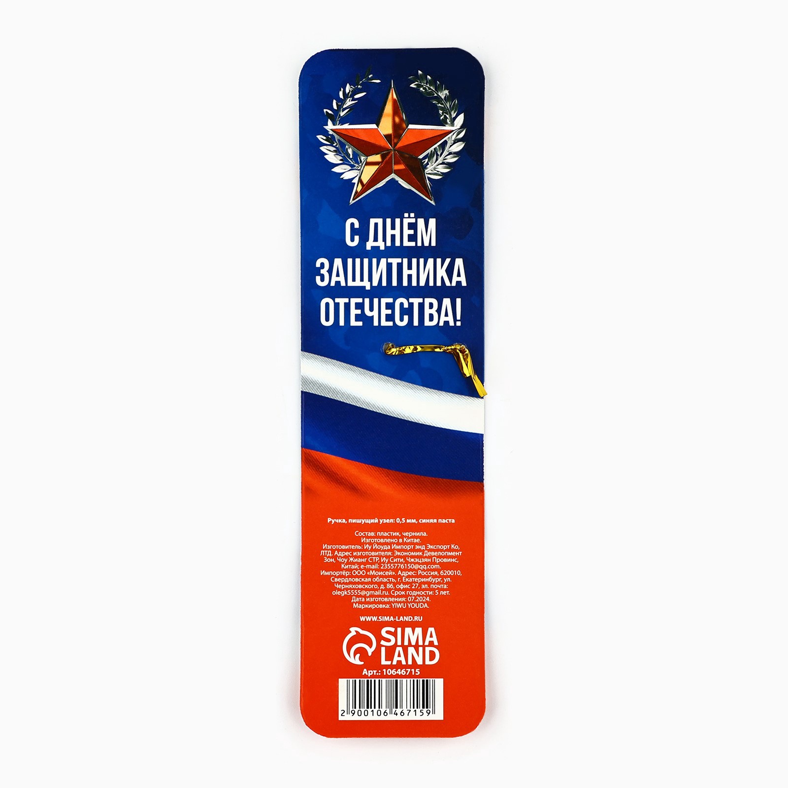 Ручка шариковая, пластик с колпачком, синяя паста 0.5 мм «лучшему защитнику. 23 февраля». Ручка отличное дополнение к подарку. Яркий дизайн несомненно привлечет внимание и будет выделяться среди других предметов, а удобная форма корпуса позволит использовать ее с комфортом. Стержень заменяемый: да;Материал: пластик.Диаметр пишущего узла, мм:0.5|Набор:Нет|Количество цветов:1|Тип:Неавтоматическая ручка|Цвет стержня:Синий|Особенности ручек:Без особенностей|Вид упаковки:Пакет|Вид упаковки:Подложка|Тематика праздника:23 Февраля|Адресат:Без адресата|Материал:Пластик|Материал упаковки:Полиэтилен|Составляющие набора:Ручка|Стержень заменяемый:Да|Штрихкод на единице товара:Да|Наличие грипа:Нет|Страна:Китай  развернуть описание ▼