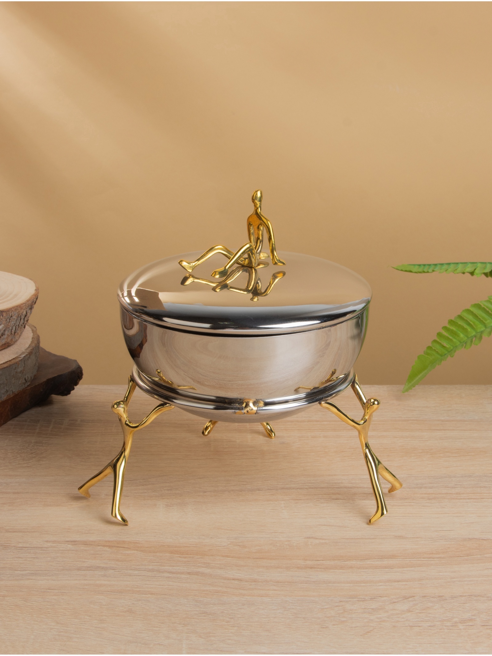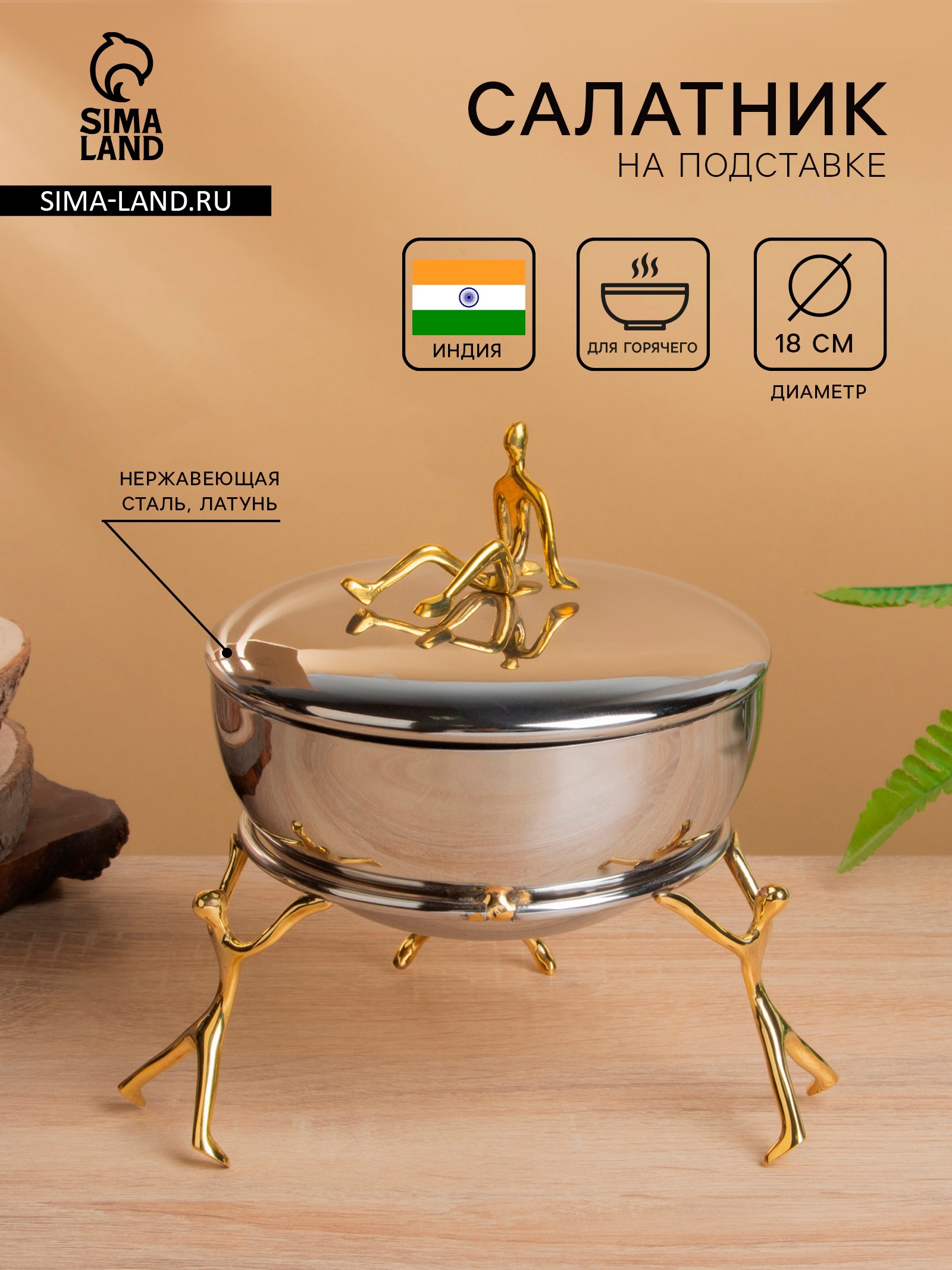 Салатник на подставке с крышкой «дружба», 18x18x18 см, нержавеющая сталь, золотистый