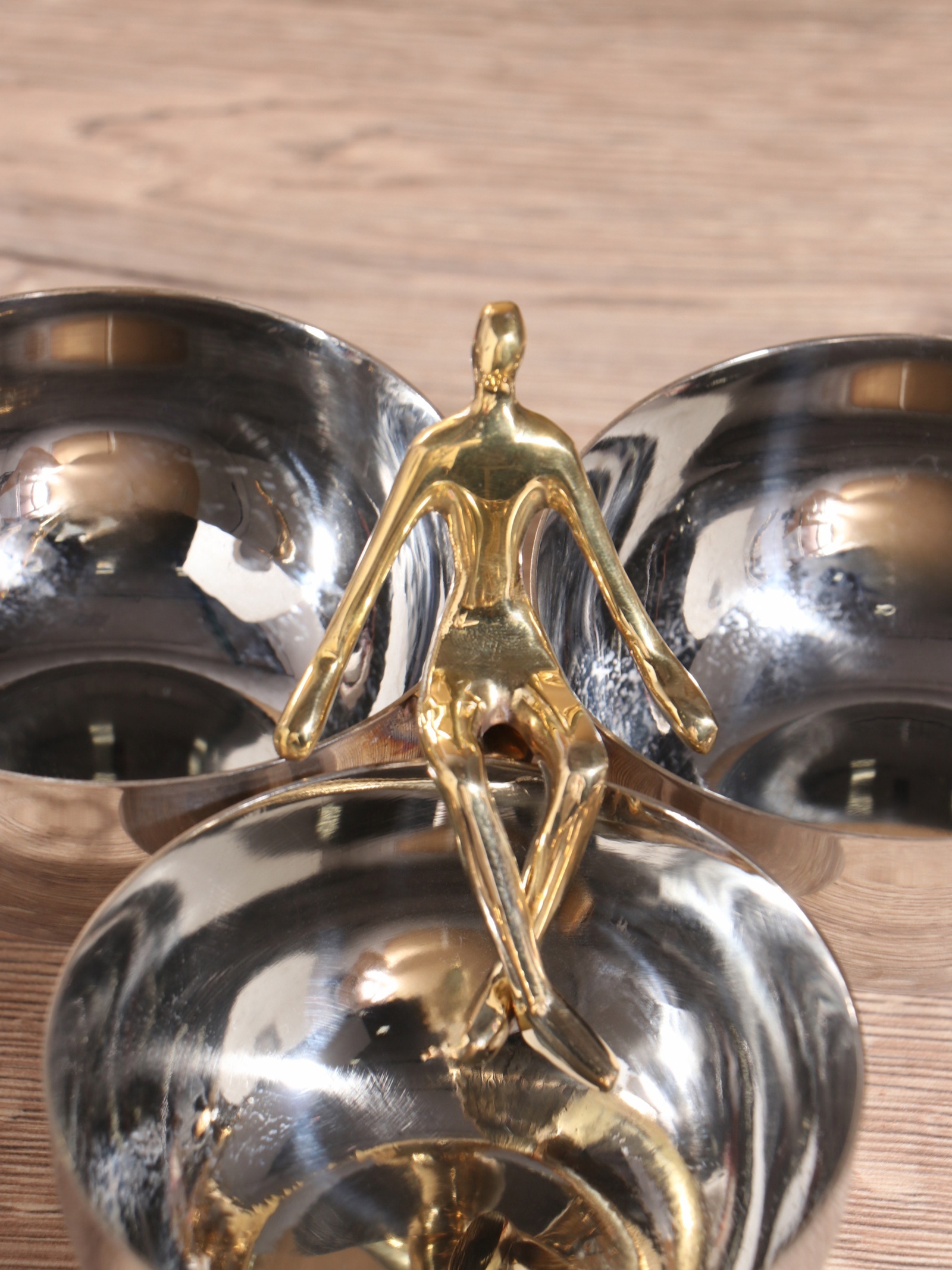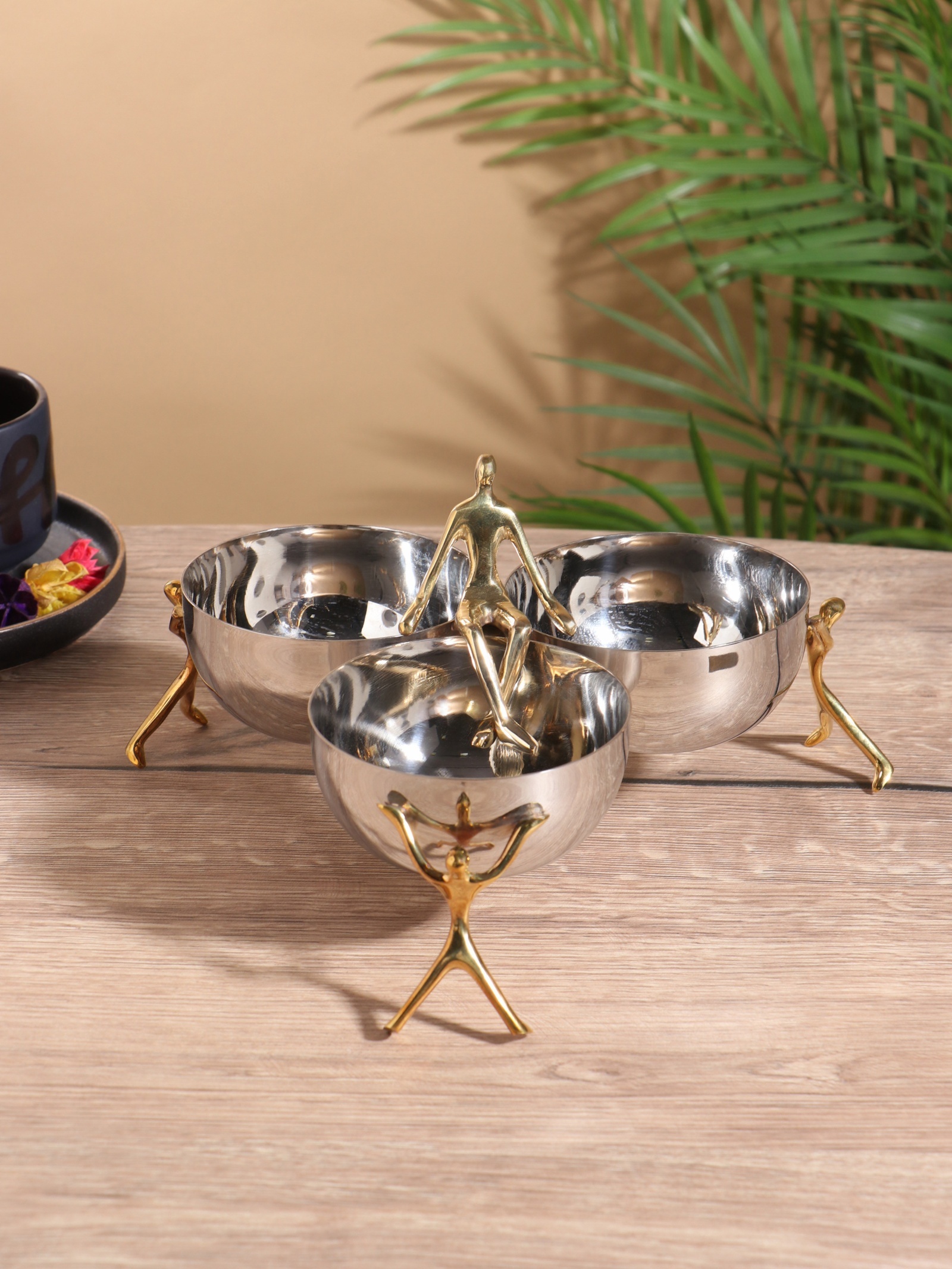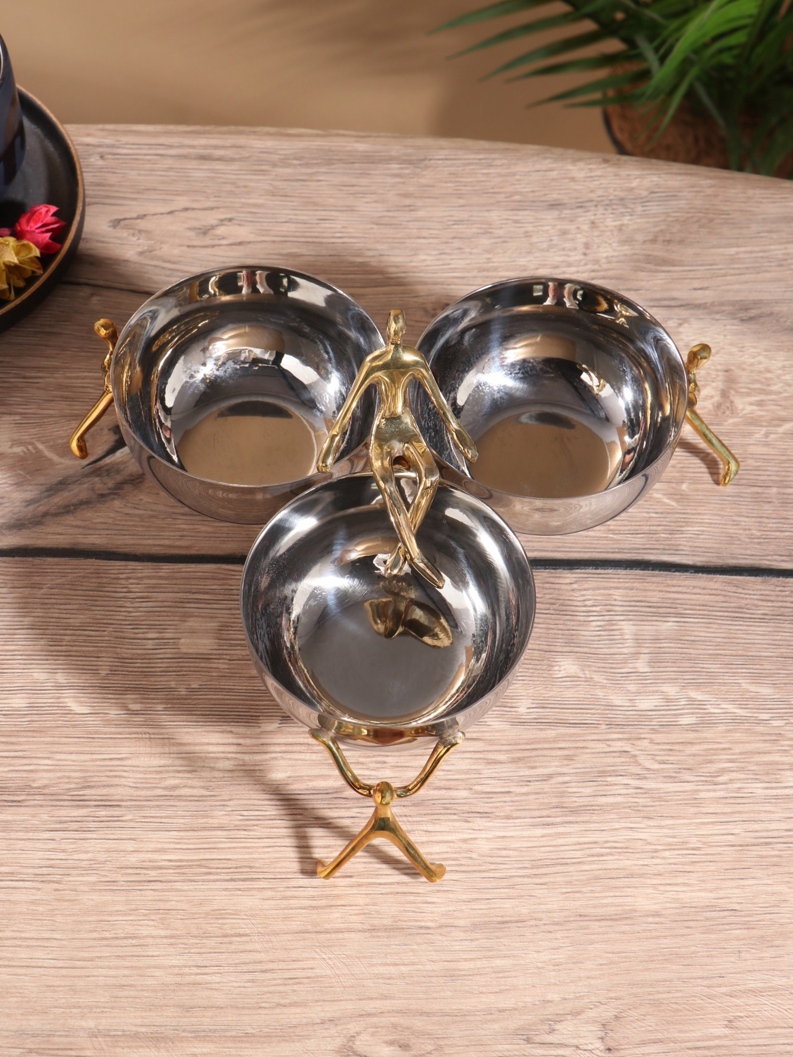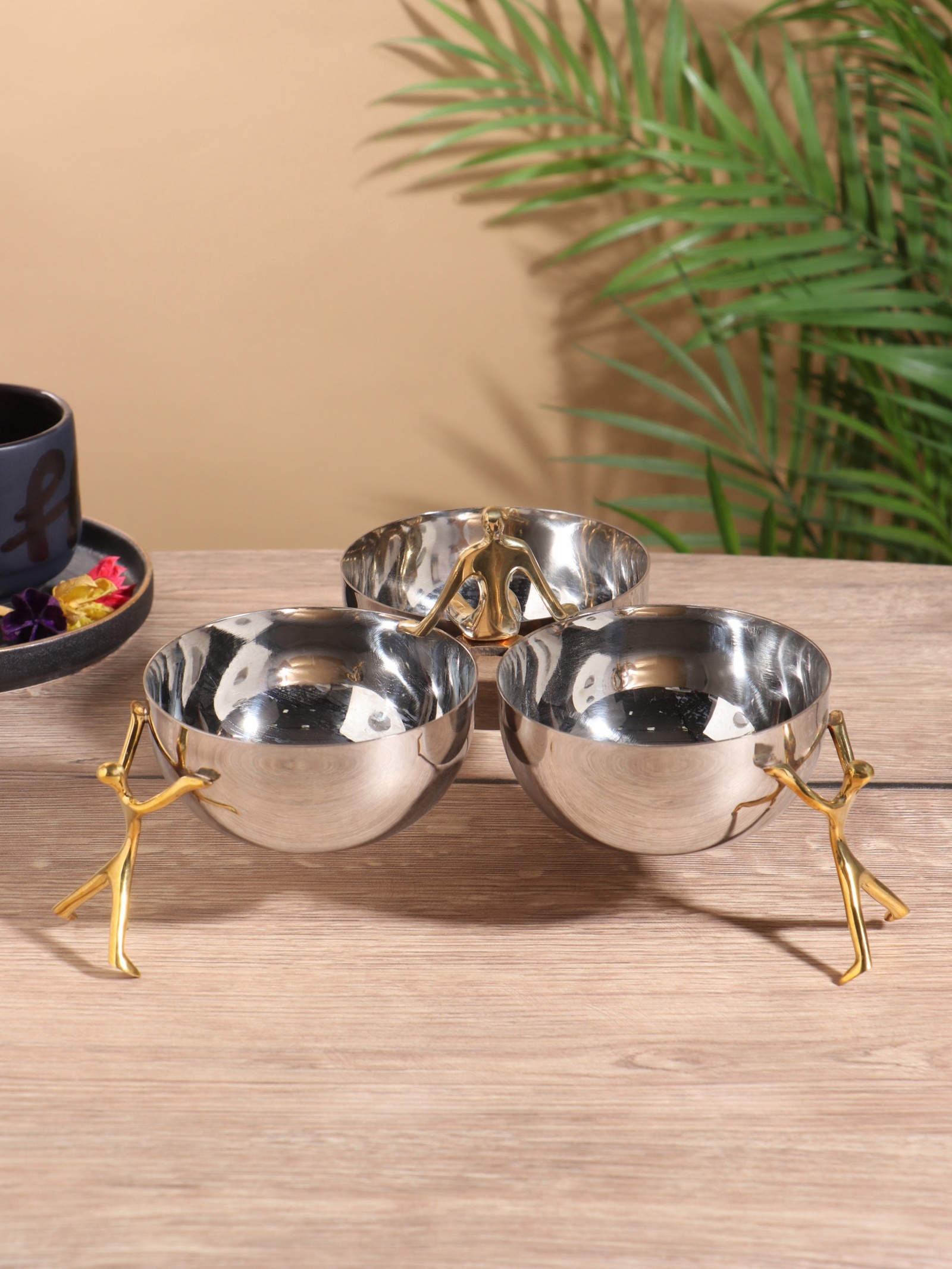 Менажница «единство», 3 чаши, 27x27x14 см, нержавеющая сталь, латунь
