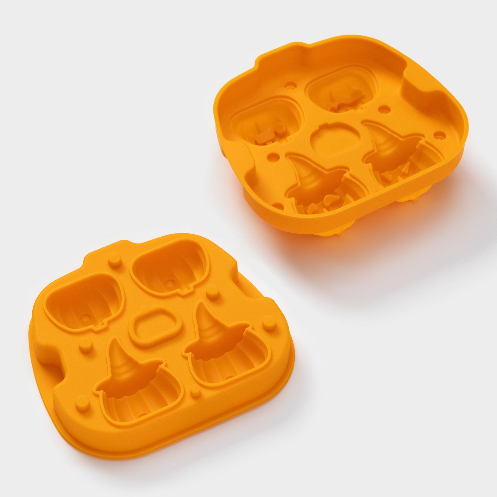 Форма для льда доляна «тыква», силикон, 4 ячейки, 15,4x14x4,5 см, цвет оранжевый