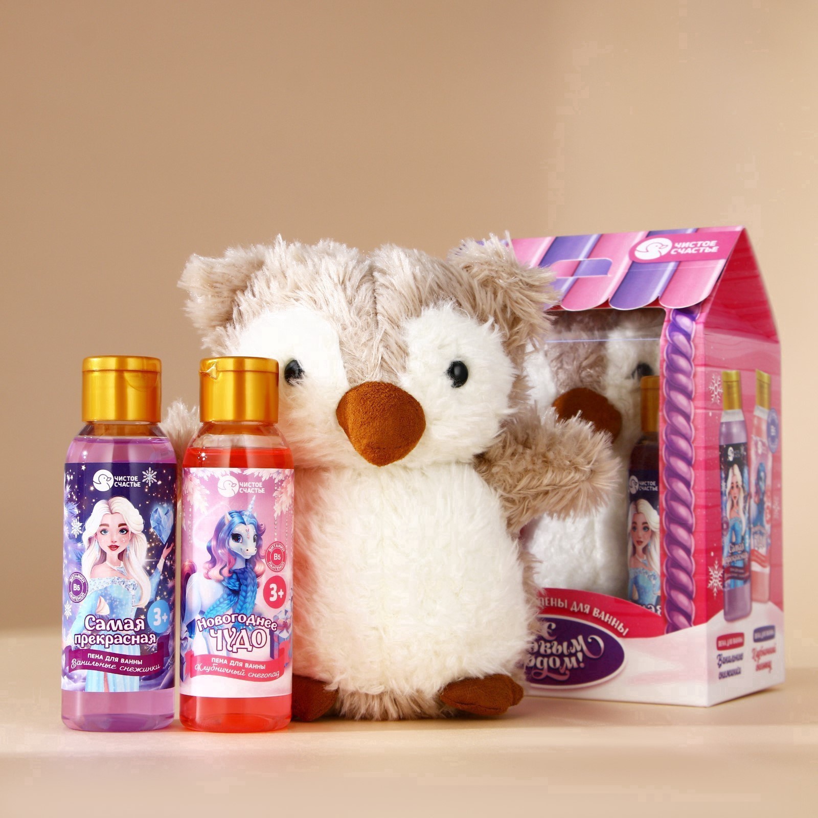 Подарочный набор детский «с новым годом», пена для ванны 2 100 мл и мягкая игрушка совёнок, чистое счастье