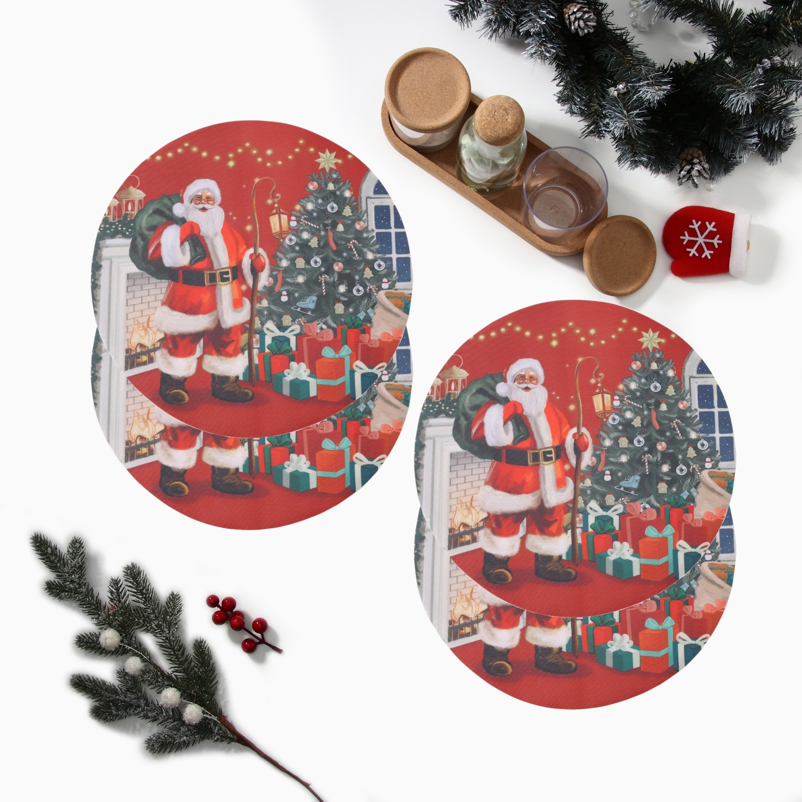 Новый год. набор салфеток на стол "санта" 30х30см-4шт., 100% п/э, оксфорд 420 г/м2