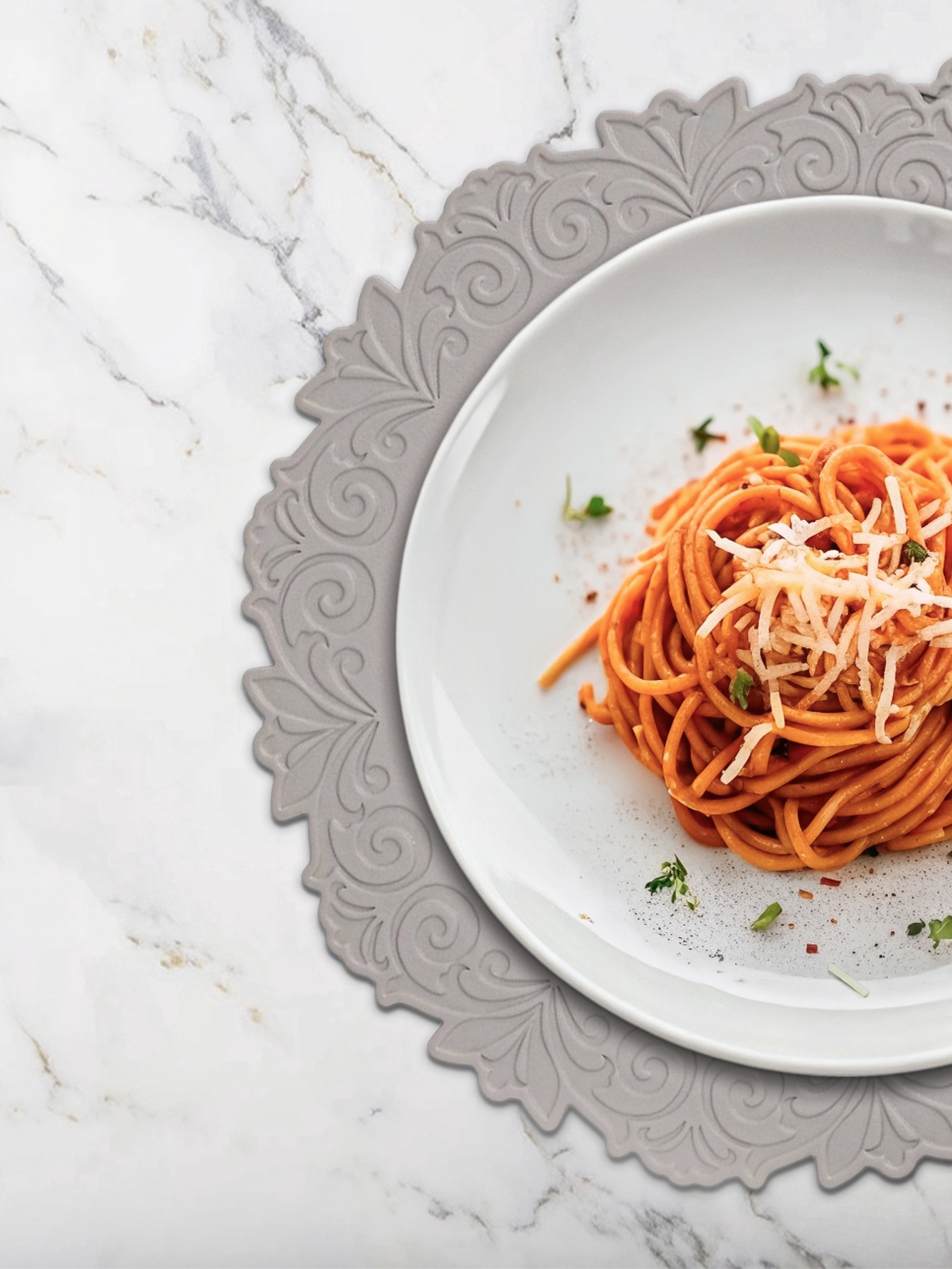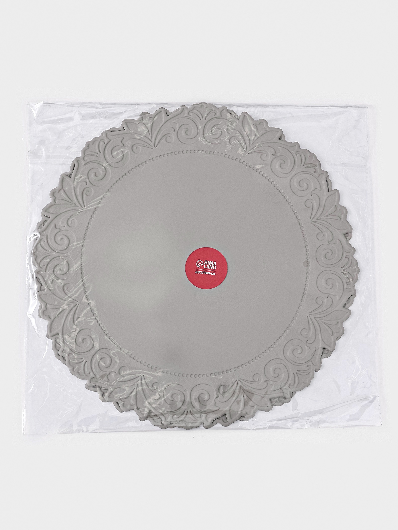 Набор салфеток сервировочных на стол доляна, 2 шт., 38 38 см, серый. Набор:Да|Цвет:Серый|Размер, см:38 х 38|В наборе, шт.:2|Тематика:Растительный орнамент|Тематика:Однотонная|Материал:ПВХ|Особенности:Противоскользящие|Фактурные:Нет|Страна:Китай  развернуть описание ▼