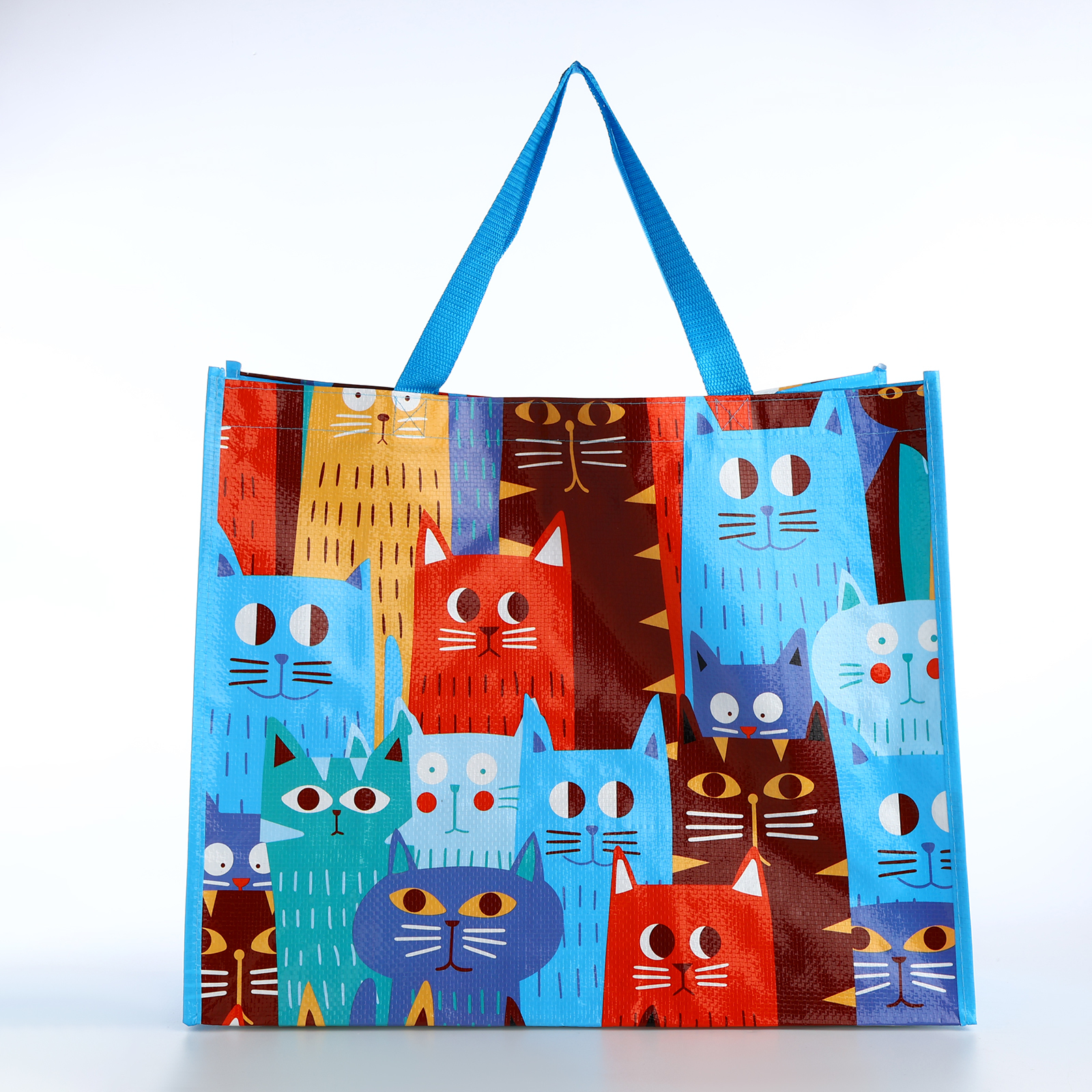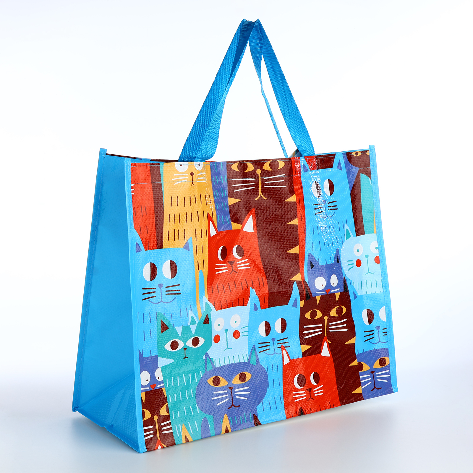 Сумка хозяйственная без застёжки, цвет голубой/разноцветный