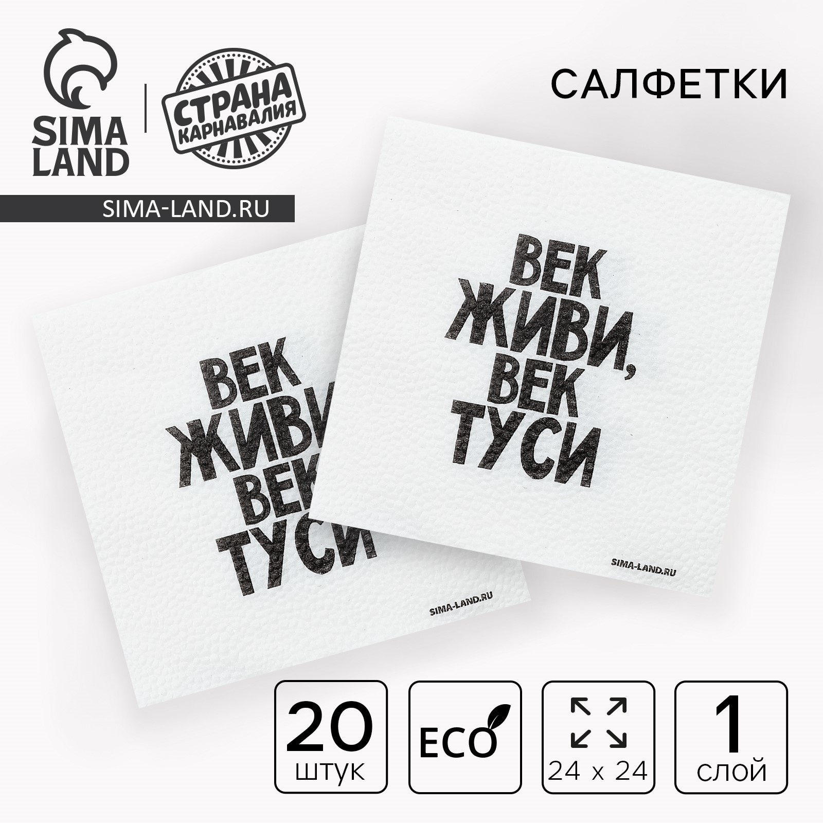 Салфетки бумажные однослойные "век живи, век туси" 24х24 см, набор 20 шт.
