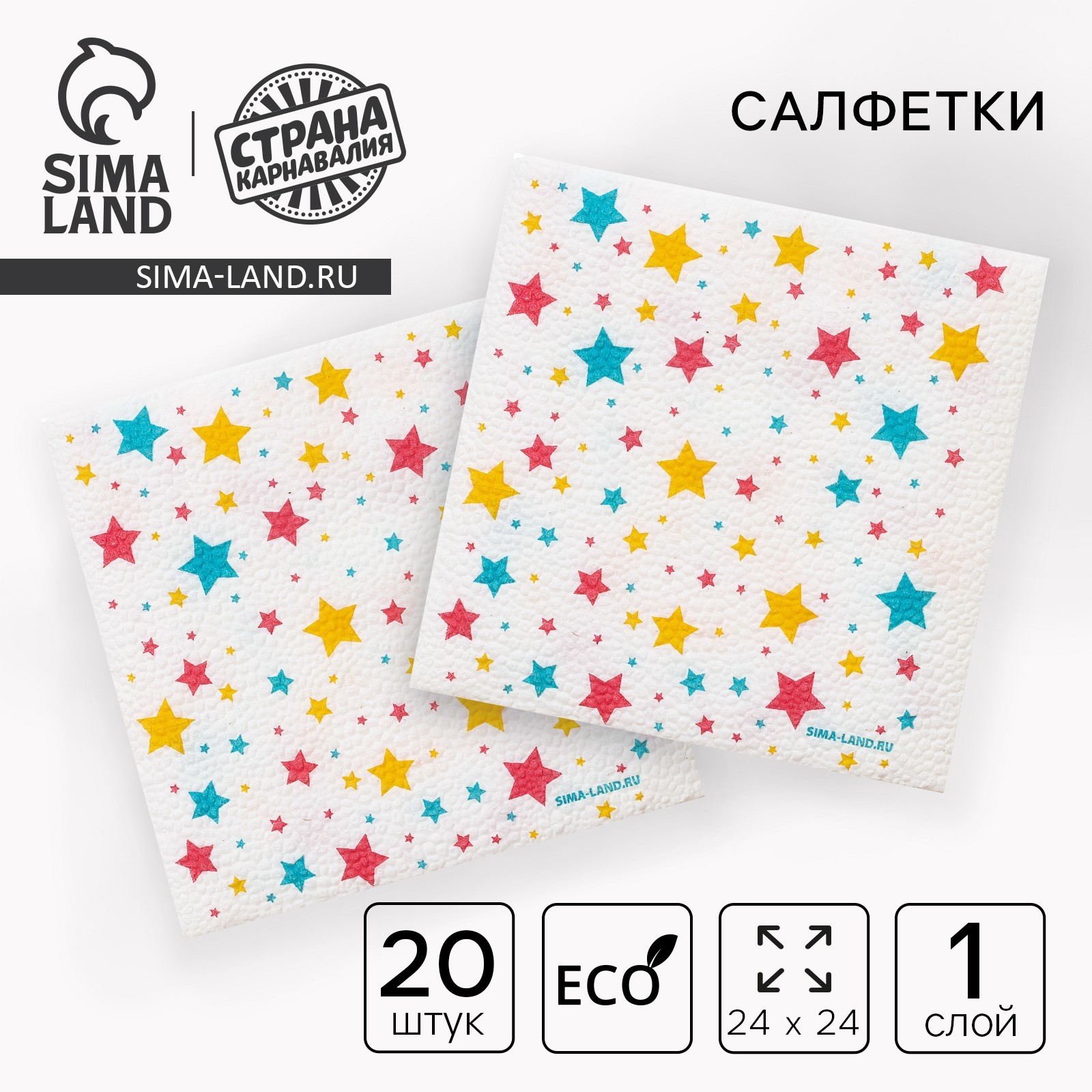 Салфетки бумажные однослойные "звезды", 24х24 см, набор 20 шт.