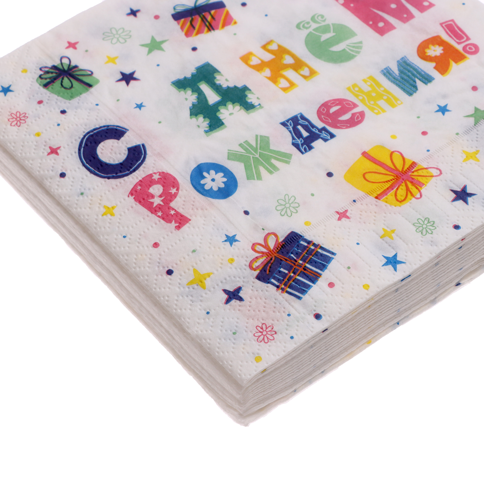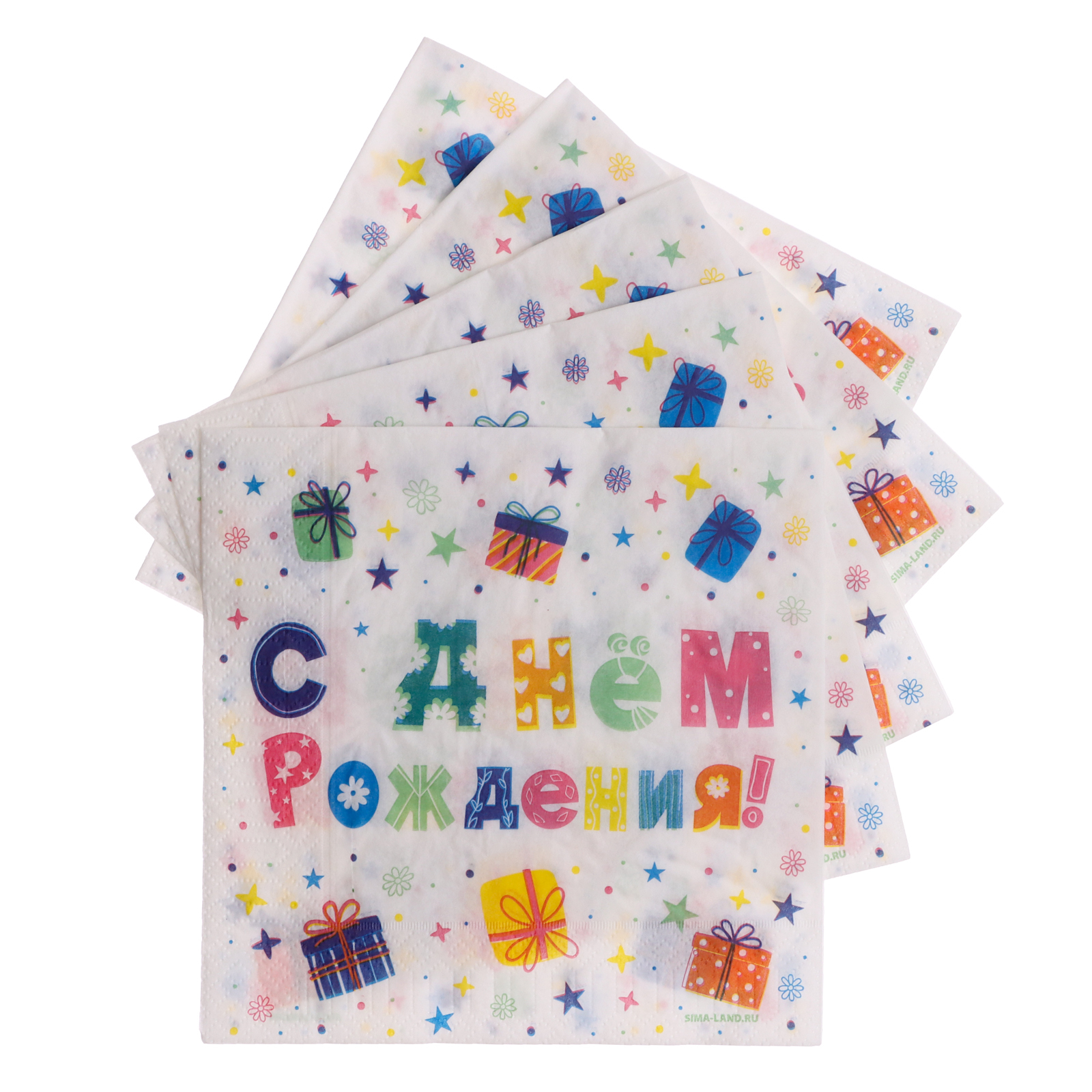Салфетки бумажные двухслойные "с днём рождения"подарки, 33х33 см, набор 20 шт.