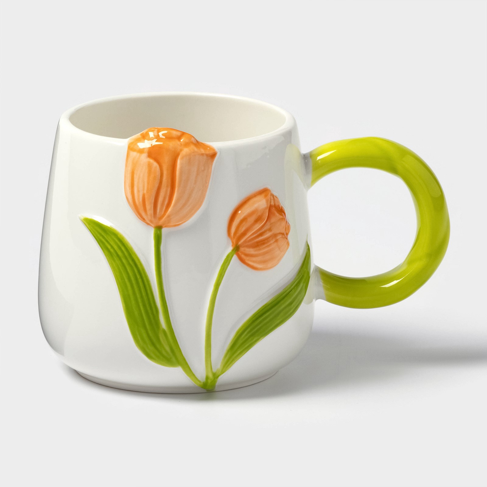 Кружка «тюльпан», 430 мл, оранжевый цветок, керамика, белая