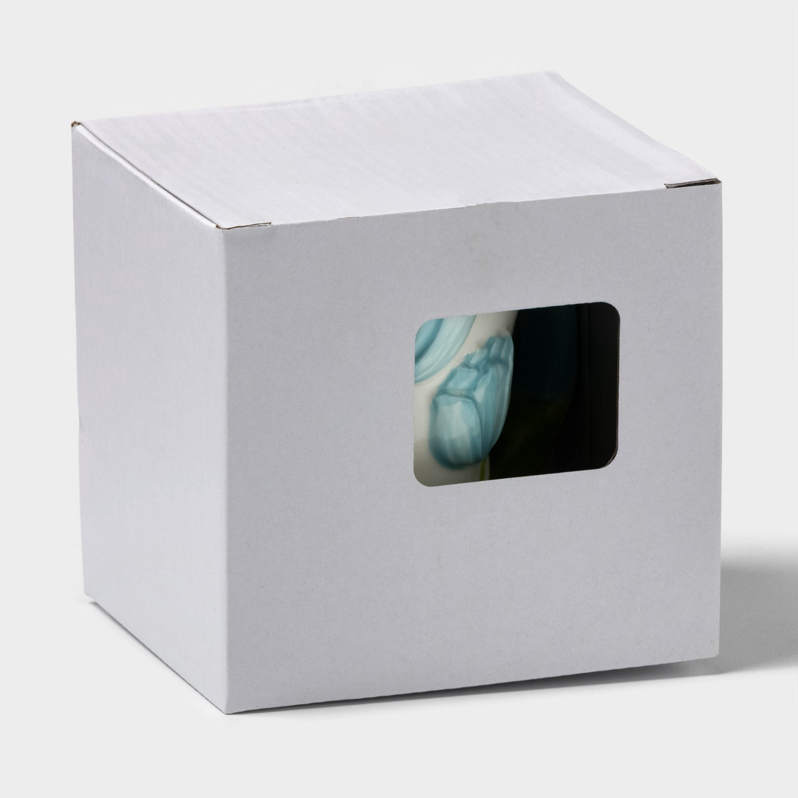 Кружка «тюльпан», 350 мл, голубой цветок, керамика, белая