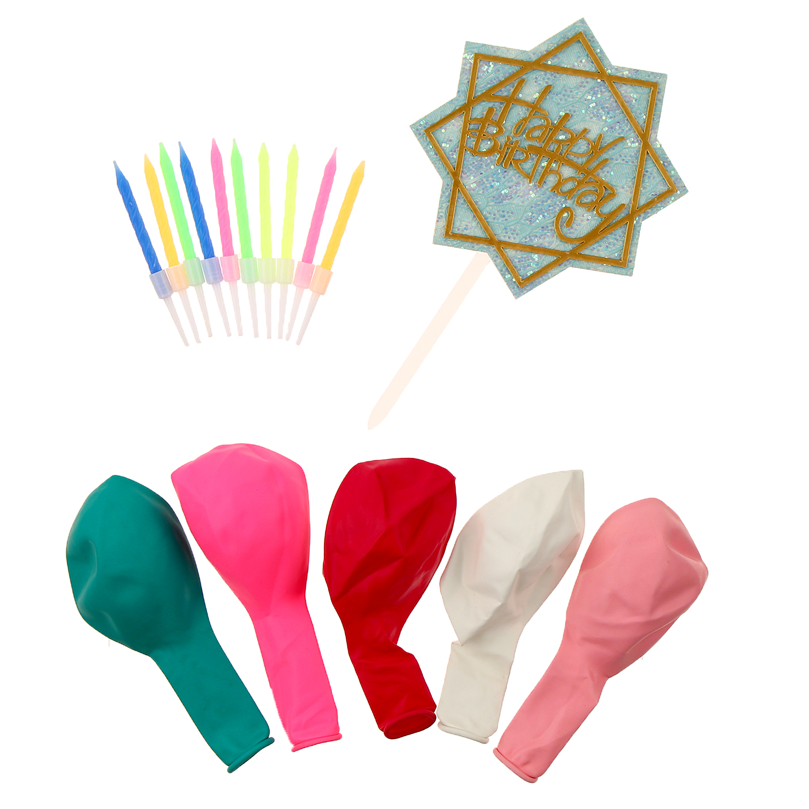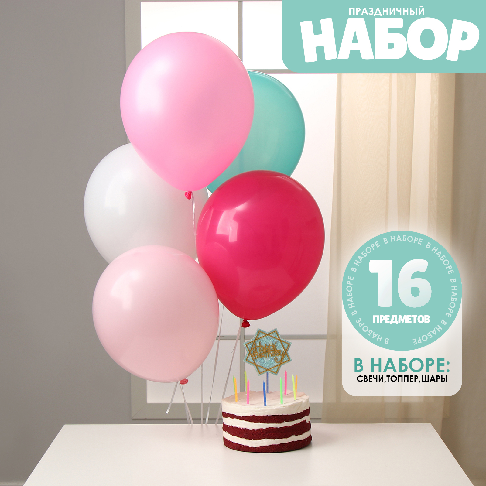 Набор для украшения стола «день рождения»: свечи, топпер, шары, в наборе 16 шт.