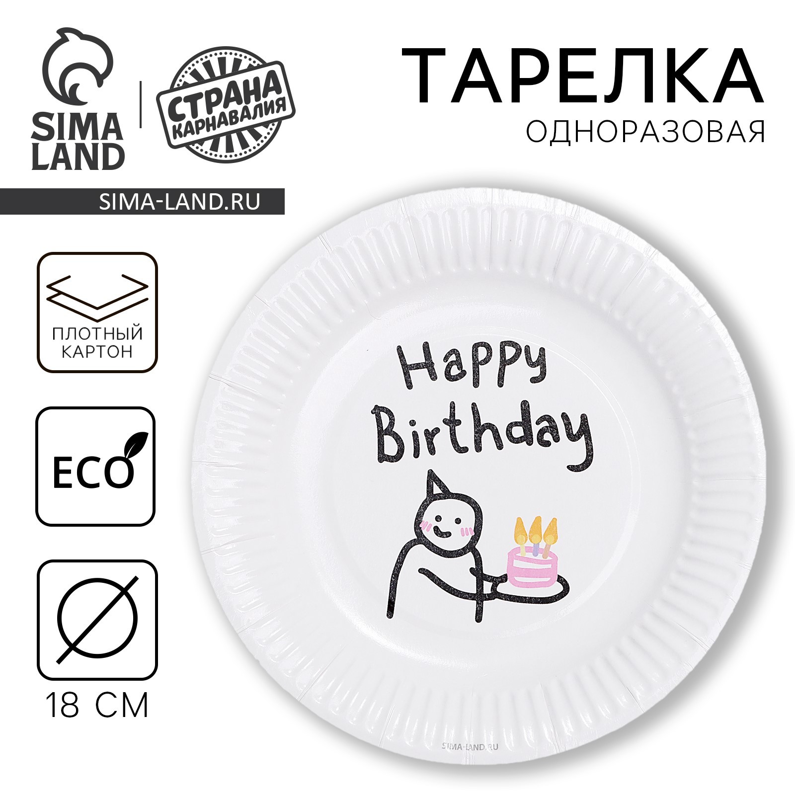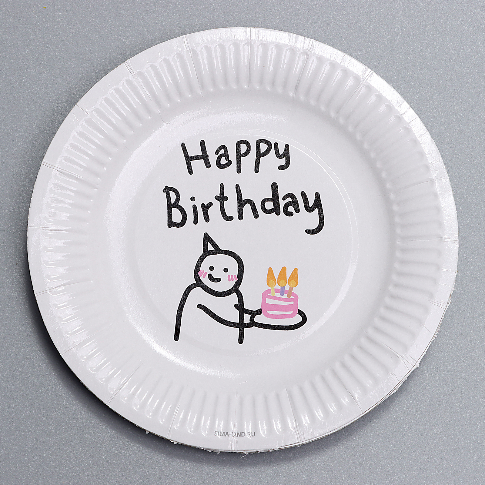 Тарелка одноразовая бумажная "с днём рождения"человечек, 18 см
