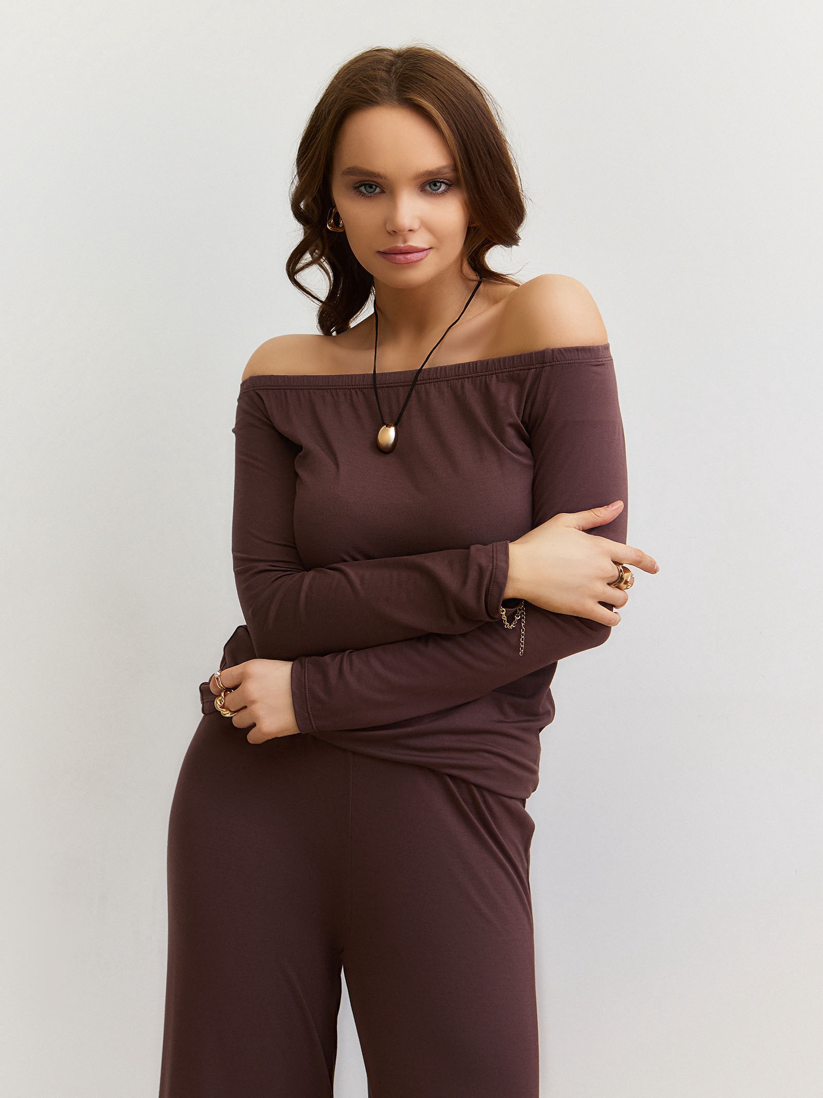 Лонгслив с открытыми плечами женский mist, размер m, коричневый. Цвет:Коричневый|Для кого:Для женщины|Назначение:Повседневная|Назначение:Вечерняя мода|Ткань:Вискоза|Размер:44|Размер:46|Рост, см:160 - 170|Сезон:Демисезон|Сезон:Лето|Вид застёжки:Без застёжки|Тематика:Однотонная|Длина рукава:Длинный|Вырез горловины:Лодочный|Декоративные элементы:Без элементов|Покрой:Полуприлегающий|Тип карманов:Без карманов|Тип рукава:Реглан|Рекомендации по уходу:Барабанная сушка при низкой температуре|Рекомендации по уходу:Глажка при 110 °С|Рекомендации по уходу:Деликатная стирка при 30 °С|Рекомендации по уходу:Не отбеливать|Состав ткани:Эластан|Состав ткани:Вискоза|Наличие капюшона:Нет|Страна:Китай  развернуть описание ▼