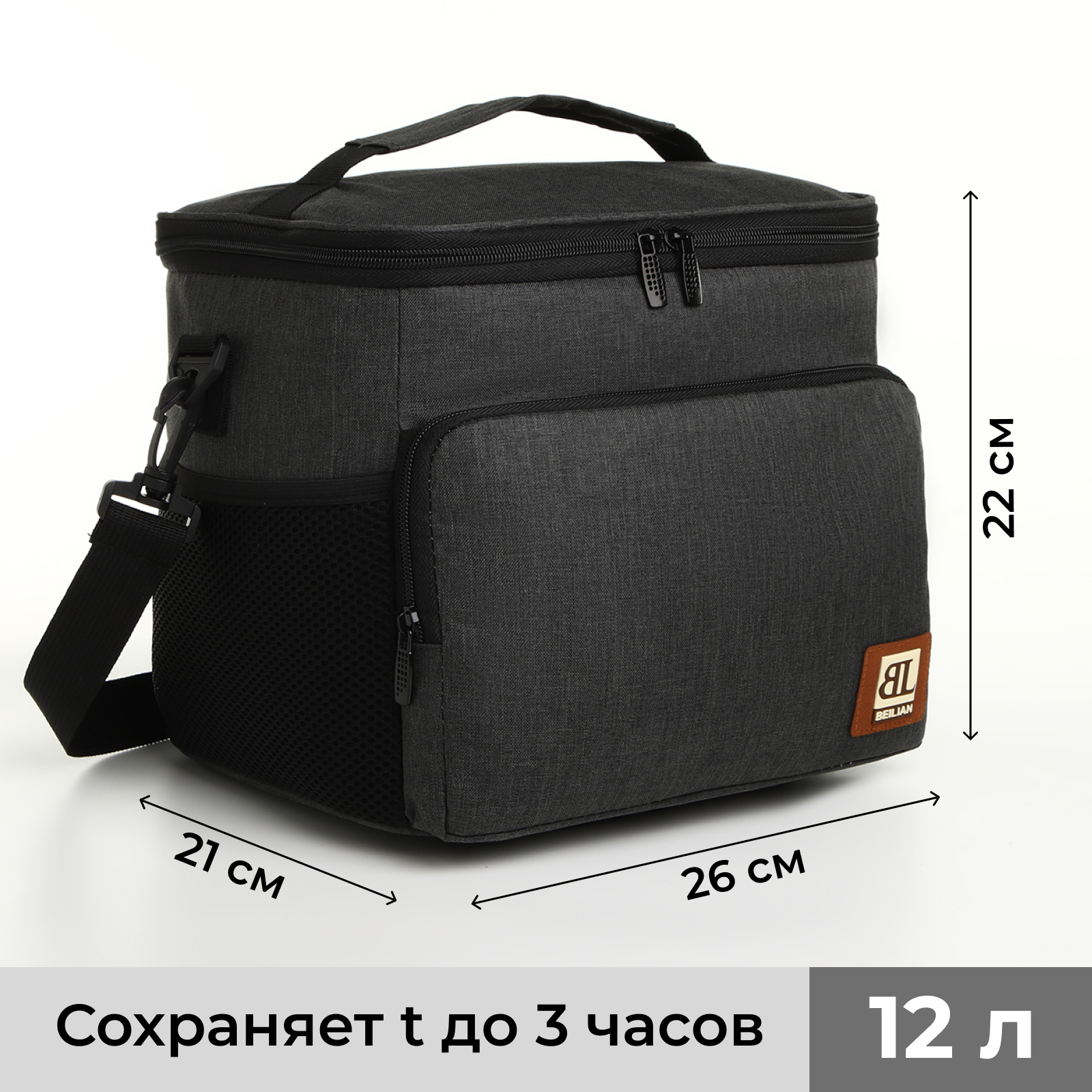 Термосумка на молнии, наружный карман, 12 л, цвет чёрный