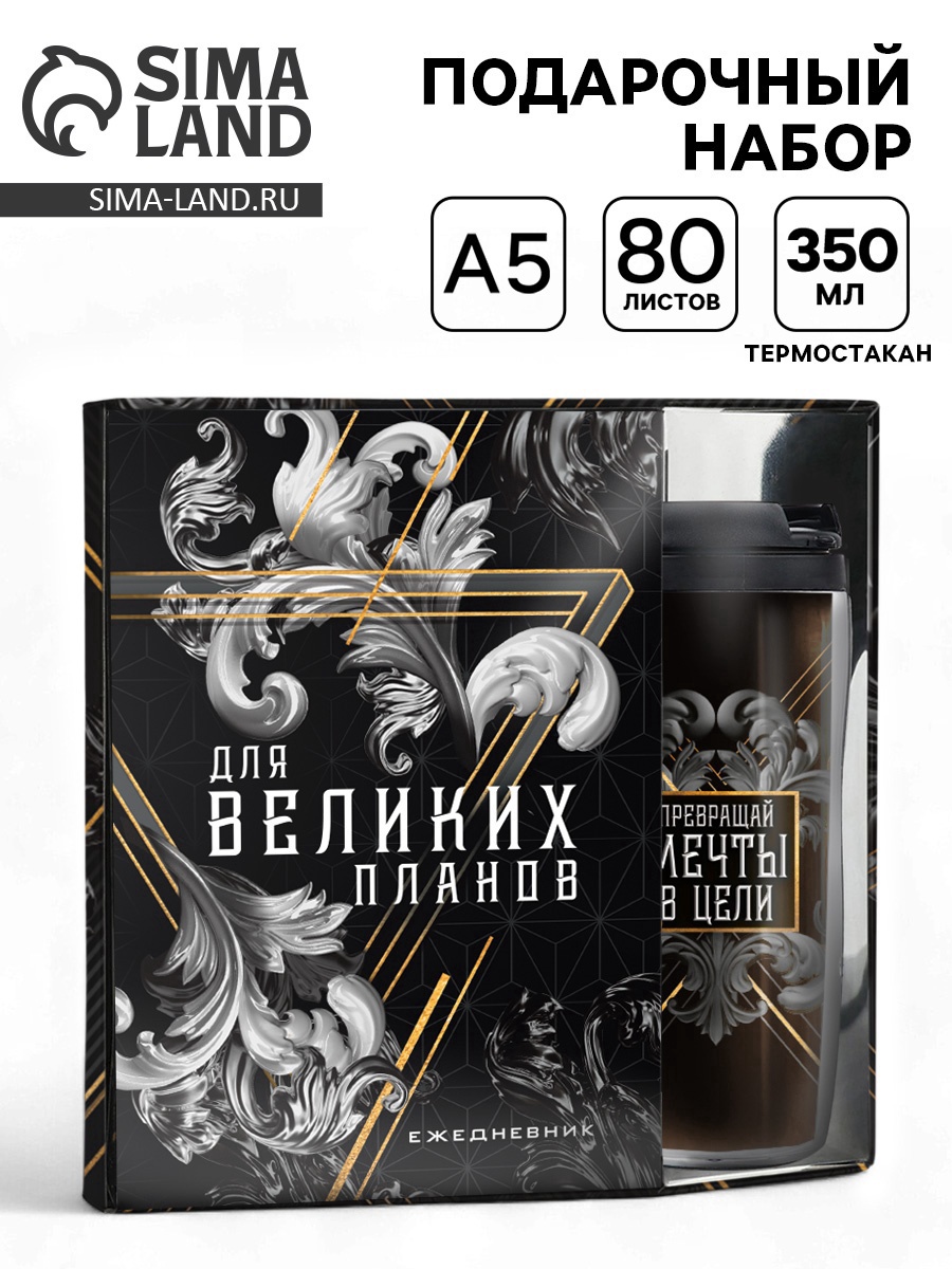 Подарочный набор, ежедневник а5, 80 л. и термостакан 350 мл «для великих планов»