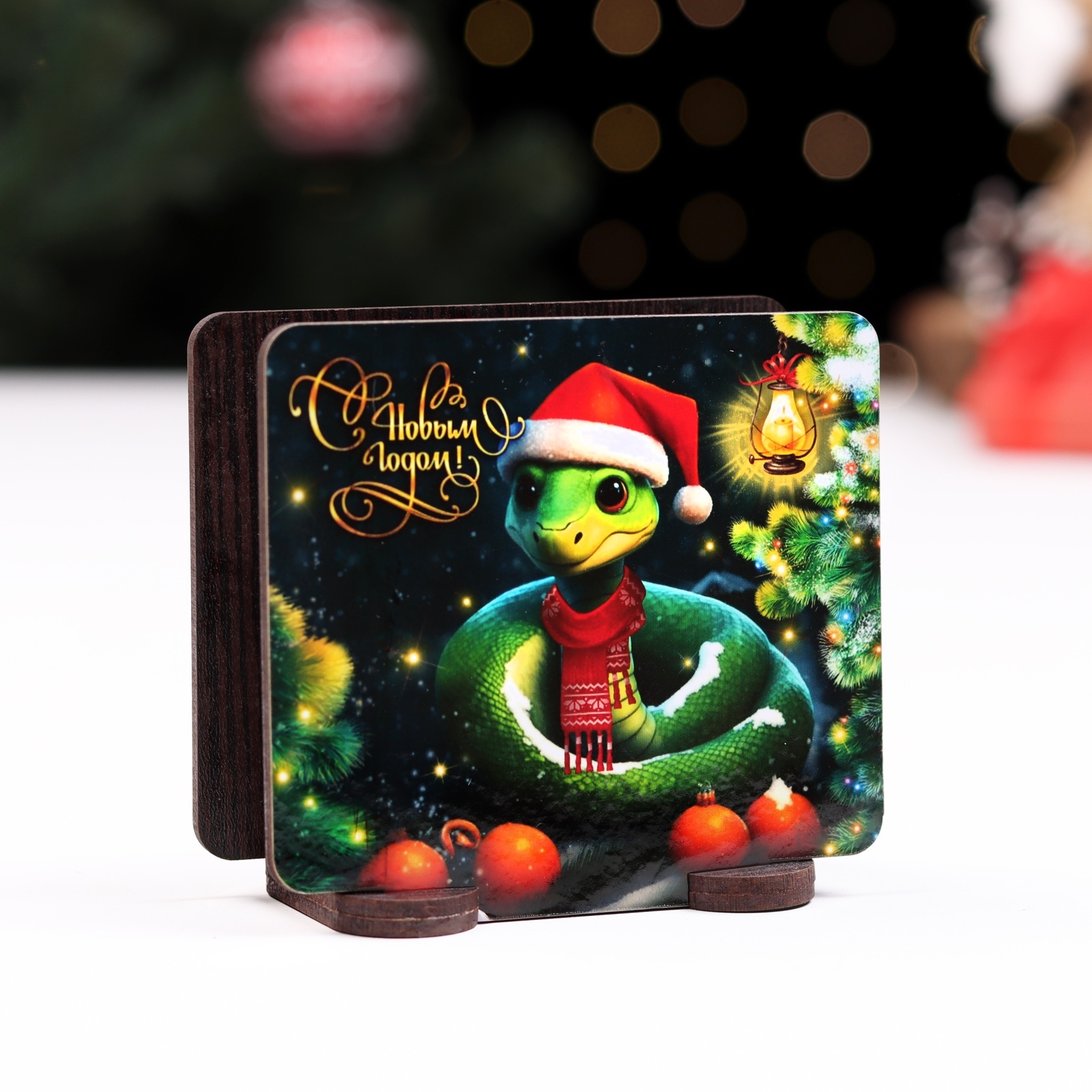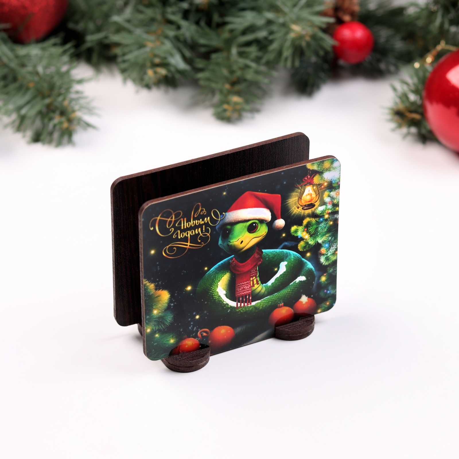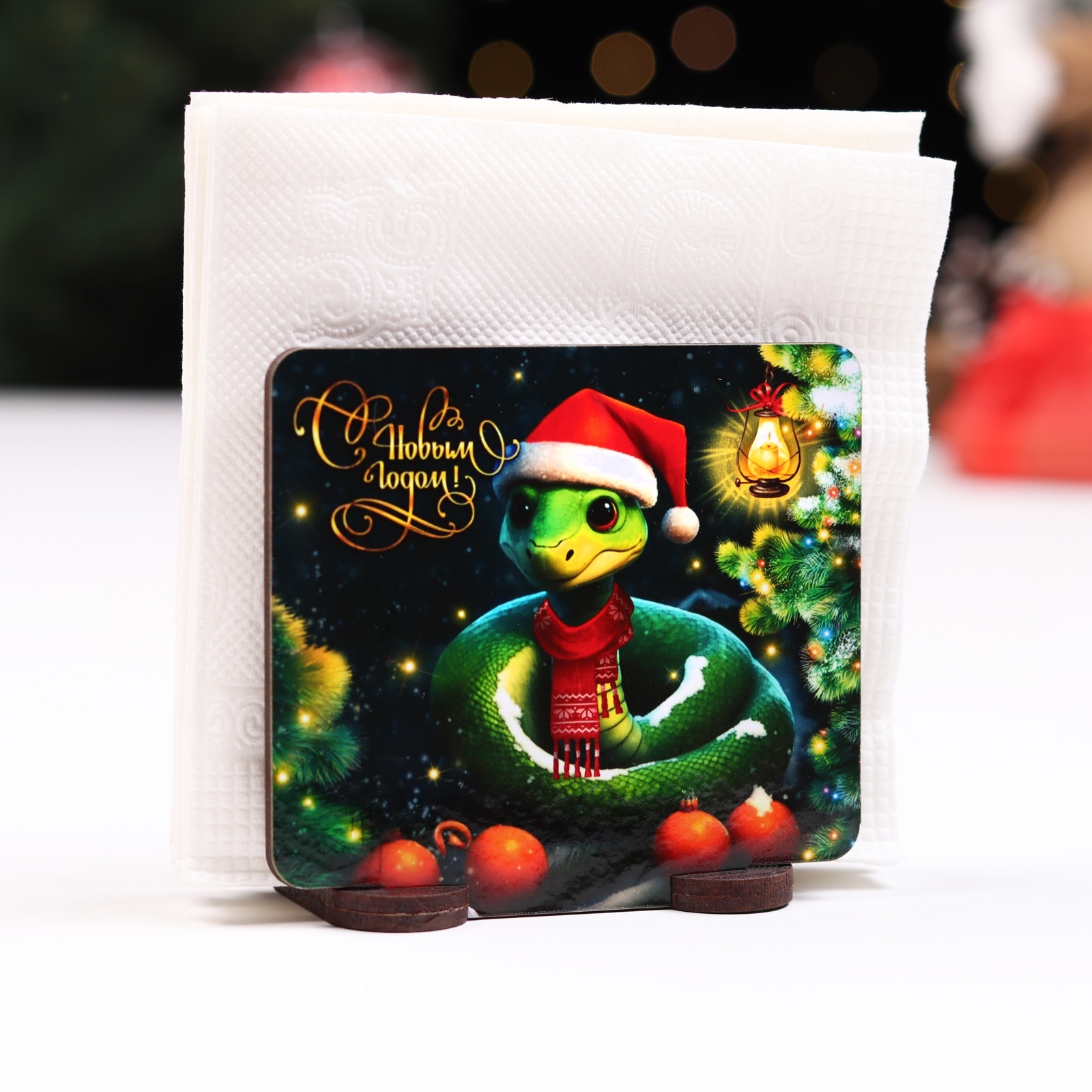 Салфетница №4 "змея в шапке с мандаринами", квадратная