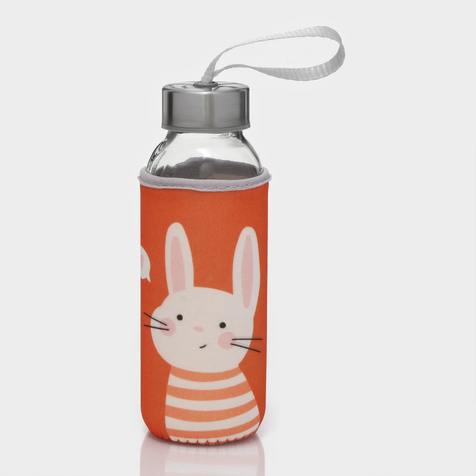 Бутылка для воды стеклянная в чехле «банни», 300 мл, H=17 см