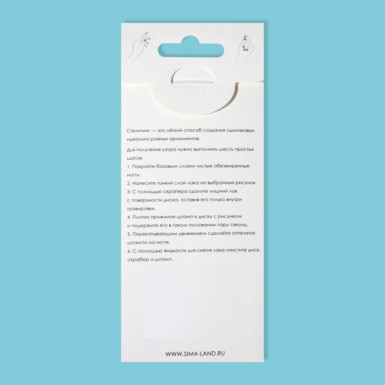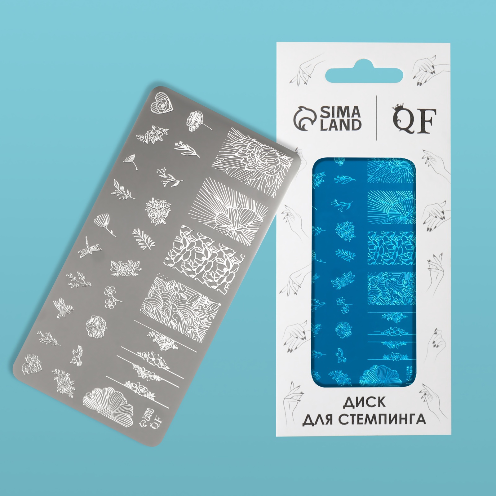 Пластина для стемпинга металлическая «цветочная поляна», 12 6 см.   Откройте для себя мир безупречного нейл-арта с металлическим диском для стемпинга от Queen Fair (QF)! Этот профессиональный инструмент станет незаменимым помощником в создании уникального и стильного дизайна ногтей, который подчеркнёт вашу индивидуальность и творческий потенциал. Металлический диск для стемпинга — это инновационное решение для тех, кто стремится к совершенству в нейл-дизайне. Он обеспечивает чёткость и точность оттиска, позволяя вам легко переносить выбранный дизайн на ногти. Благодаря своей универсальности, диск подходит как для профессиональных мастеров, так и для начинающих любителей нейл-арта. Преимущества нашего металлического диска для стемпинга: Высокое качество. Изготовлен из прочного металла, что гарантирует долговечность и надёжность использования.Универсальность. Подходит для всех типов стемперов и дизайнов.Чёткость оттиска. Обеспечивает высокую детализацию и чёткость переноса рисунка на ногтевую пластину.Простота использования. Легко очищается и не требует специальных навыков для работы.Диск имеет оптимальный размер, который позволяет комфортно работать с различными дизайнами. Он легко моется и дезинфицируется, что обеспечивает безопасность и гигиеничность использования. Не упустите возможность приобрести наш металлический диск для стемпинга и создать неповторимый дизайн ногтей! Он станет вашим верным спутником в мире нейл-арта, помогая воплощать самые смелые идеи и творческие задумки. ПрименениеКак пользоваться диском для стемпинга: Сделайте маникюр и придайте ногтям желаемую форму. Удалите кутикулу и отшлифуйте поверхность ногтя бафом, чтобы она стала гладкой. Нанесите базовое покрытие на всю поверхность ногтя. Это поможет создать гладкую основу для дизайна и предотвратить проникновение пигмента в ногтевую пластину. Просушите базу в LED- или UV-лампе около 30 - 60 секунд.Решите, какой рисунок вы хотите перенести на ногти.Поместите выбранный дизайн на штапм для стемпинга. Убедитесь, что дизайн расположен в центре штампа. Прижмите штамп к пластине, чтобы рисунок хорошо отпечатался.Перенесите дизайн на ноготь. Держите штамп параллельно ногтю и аккуратно прижмите его, чтобы перенести рисунок на ногтевую пластину. Старайтесь делать это быстро и уверенно, чтобы получить чёткий отпечаток.Если необходимо, добавьте дополнительные элементы или детали к рисунку. Используйте для этого различные инструменты и материалы, такие как кисти, дотсы, слайдеры и т. д.Закрепите результат. Нанесите топовое покрытие на весь ноготь, включая дизайн. Это придаст ногтям блеск и защитит их от повреждений. Просушите топ в лампе.Снимите липкий слой с помощью специального средства или спиртового раствора. Или воспользуйтесь средством без липкого слоя.Увлажните кожу рук кремом или маслом. Теперь ваш стильный и уникальный дизайн ногтей готов! Он будет радовать вас своей красотой и безупречностью на протяжении нескольких недель.Набор:Нет|Цвет:Серебристый|Тематика:Цветочно-растительная|Тематика праздника:Универсальная тематика|Материал:Металл|Вид:Пластина для стемпинга|Вид:Диск для стемпинга|Блёстки:Нет|Страна:Китай  развернуть описание ▼