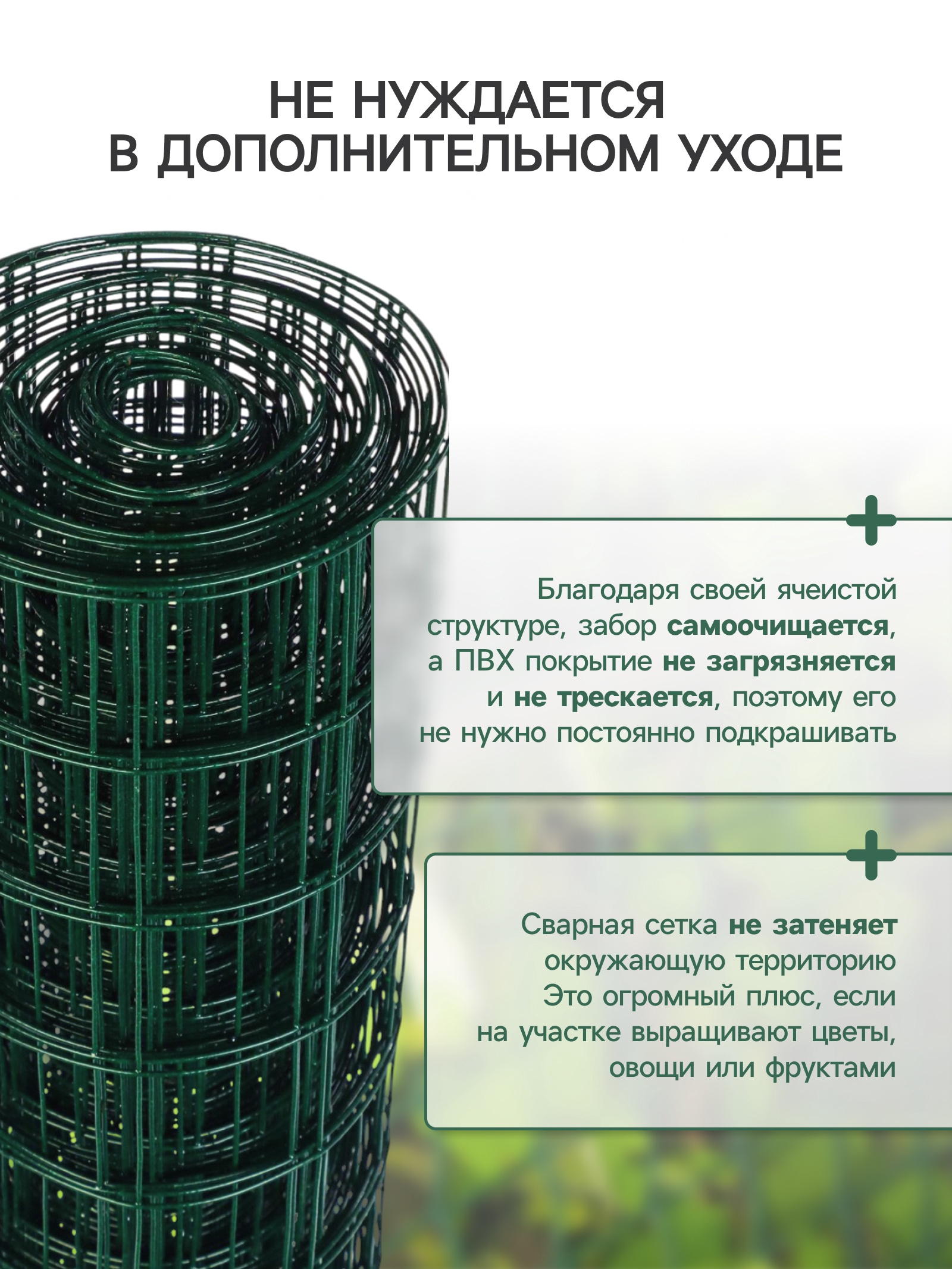 Сетка сварная с пвх покрытием, 10 0.5 м, ячейка 50 50 мм, D=1 мм, металл, Greengo