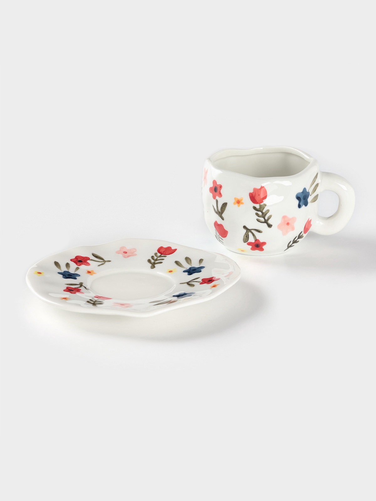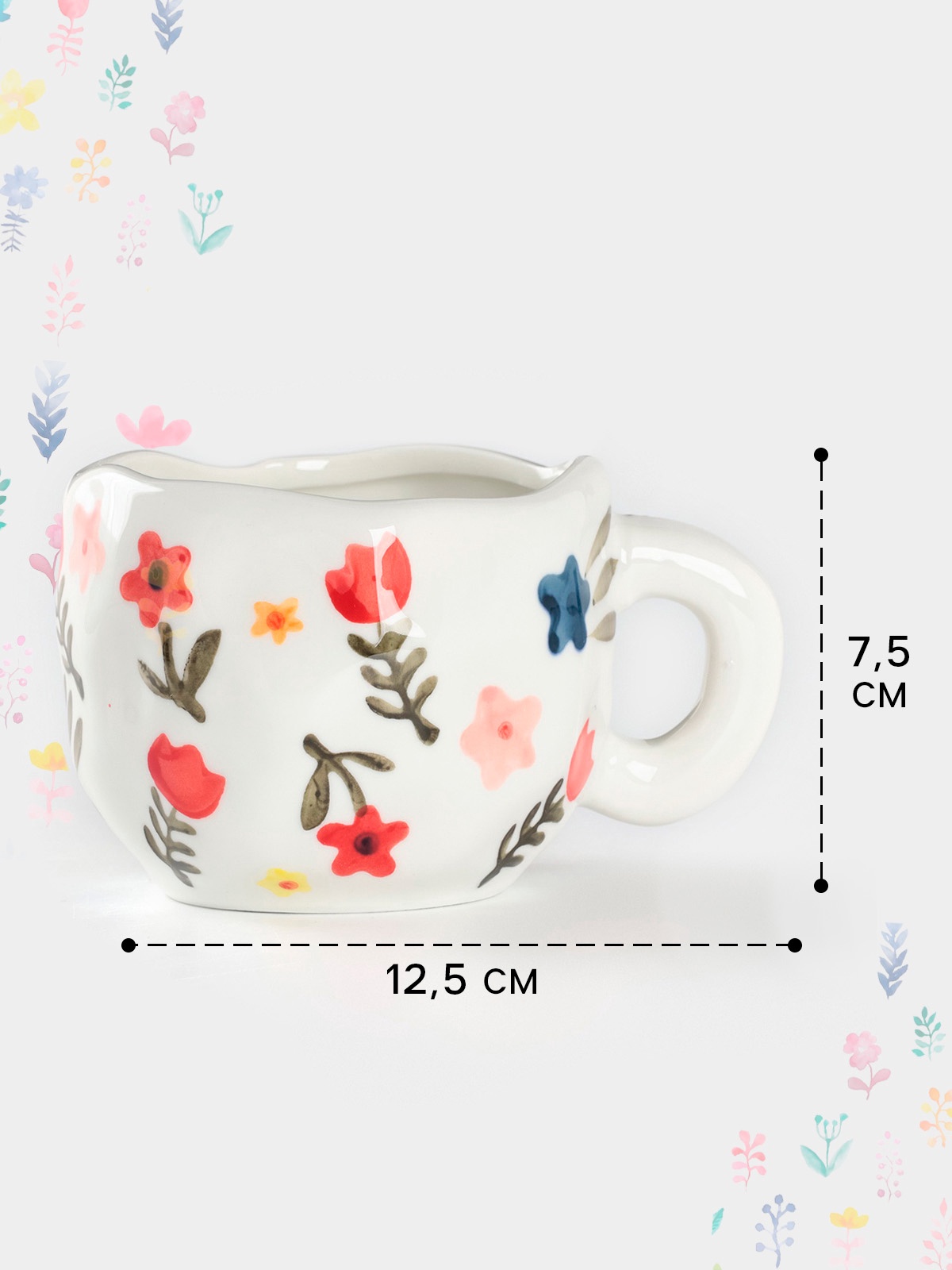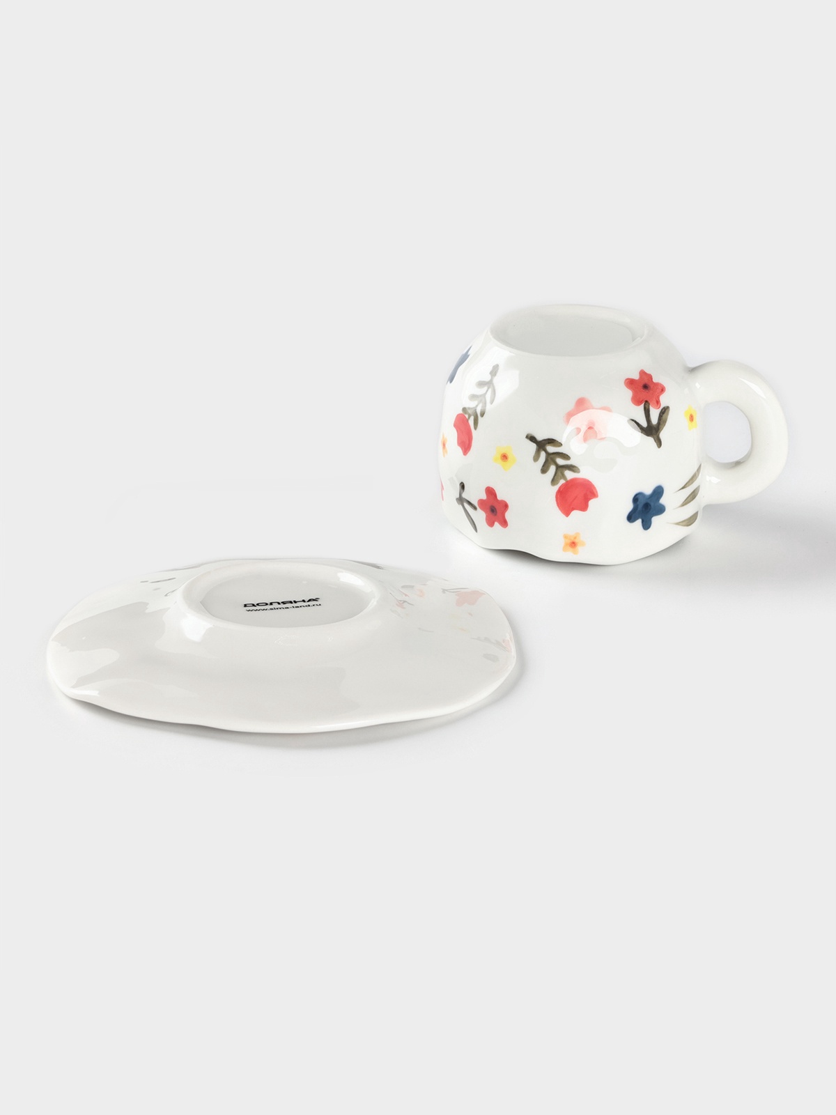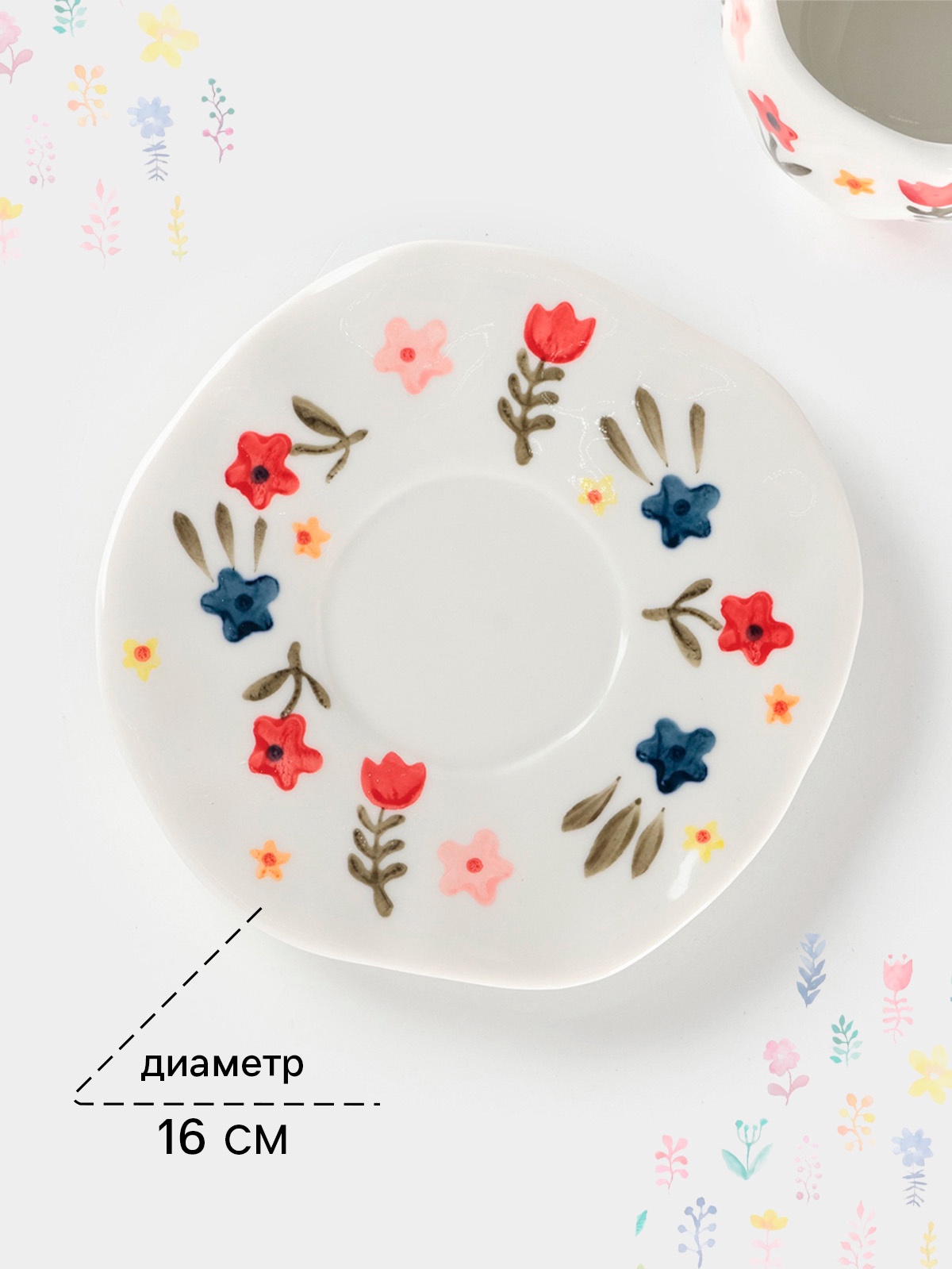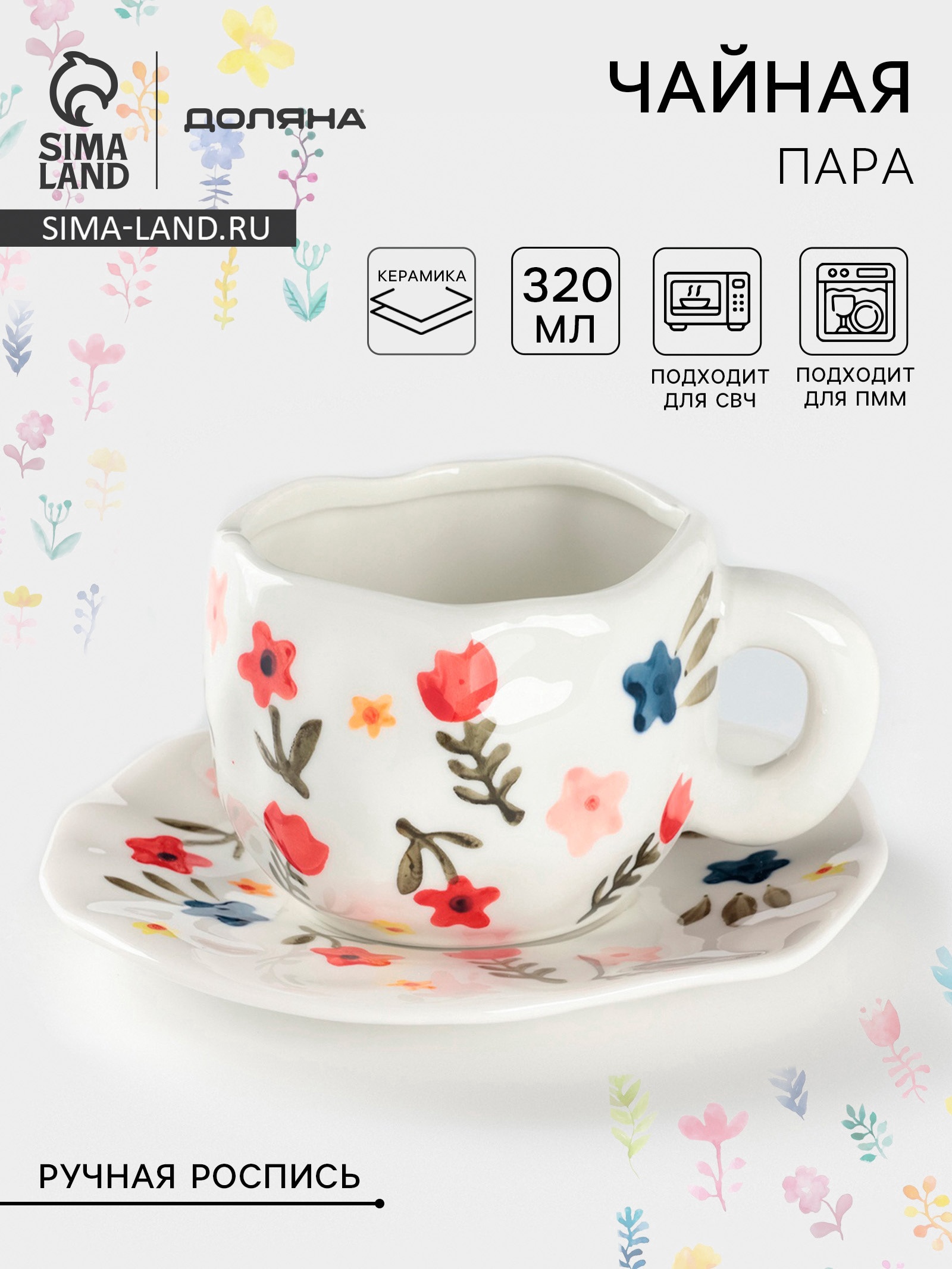Чайная пара доляна «цветочная россыпь», чашка 320 мл, блюдце D=16 см, ручная роспись, керамика, белая
