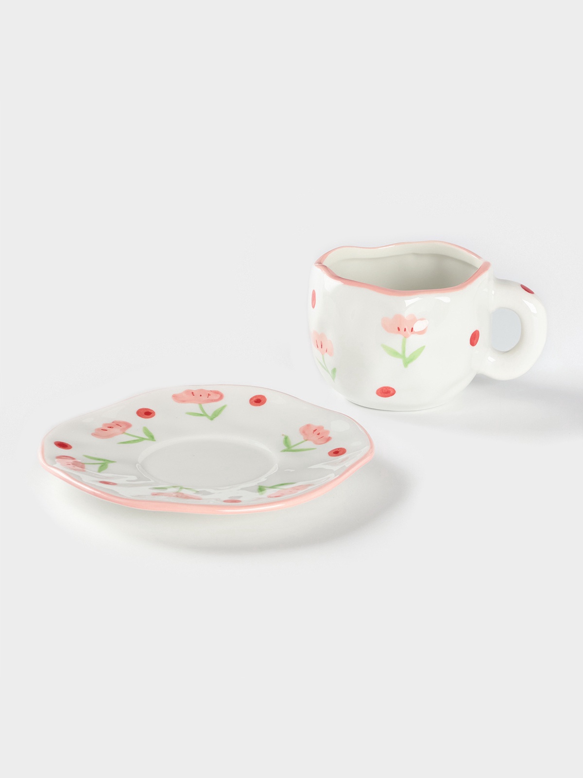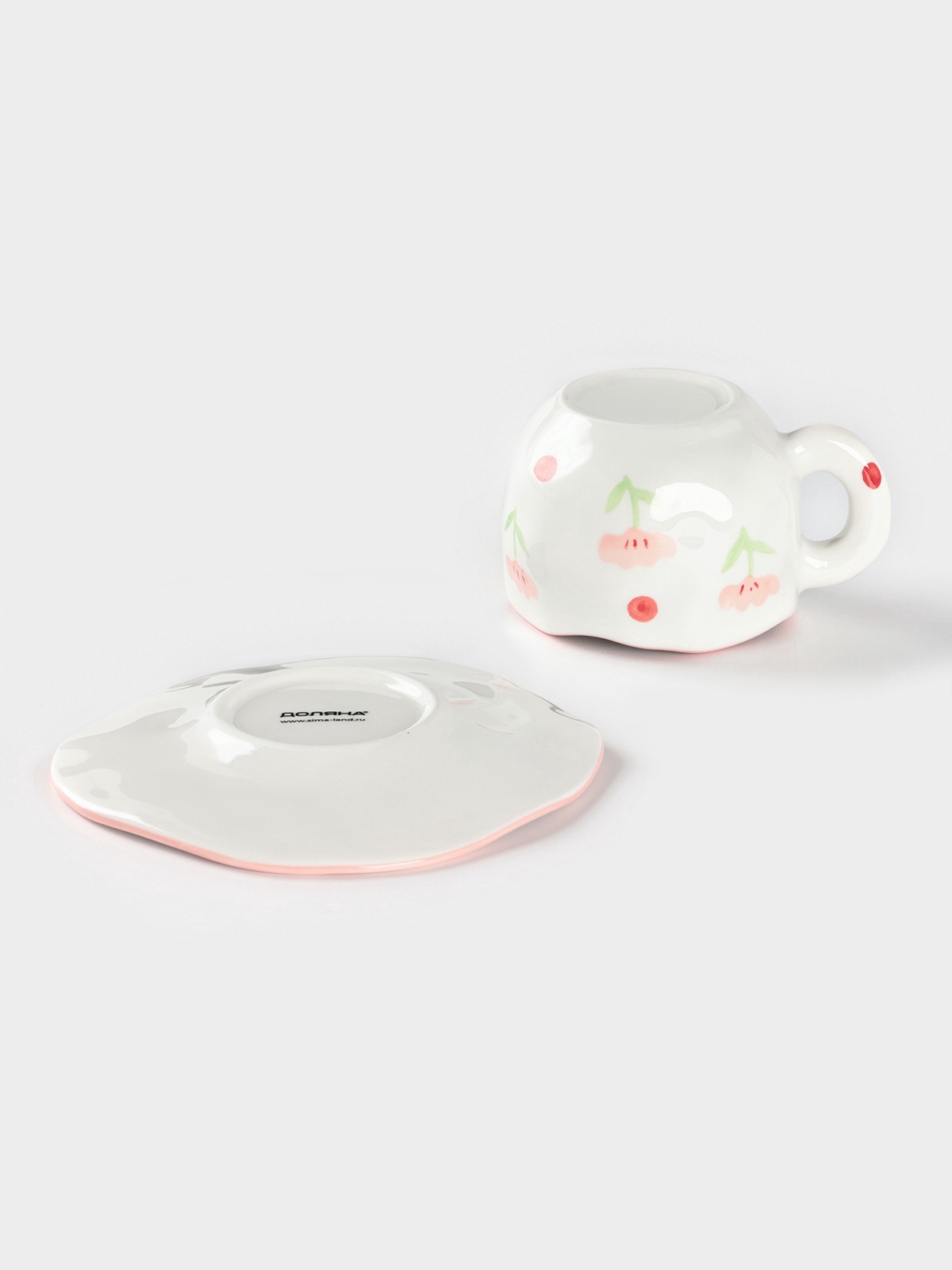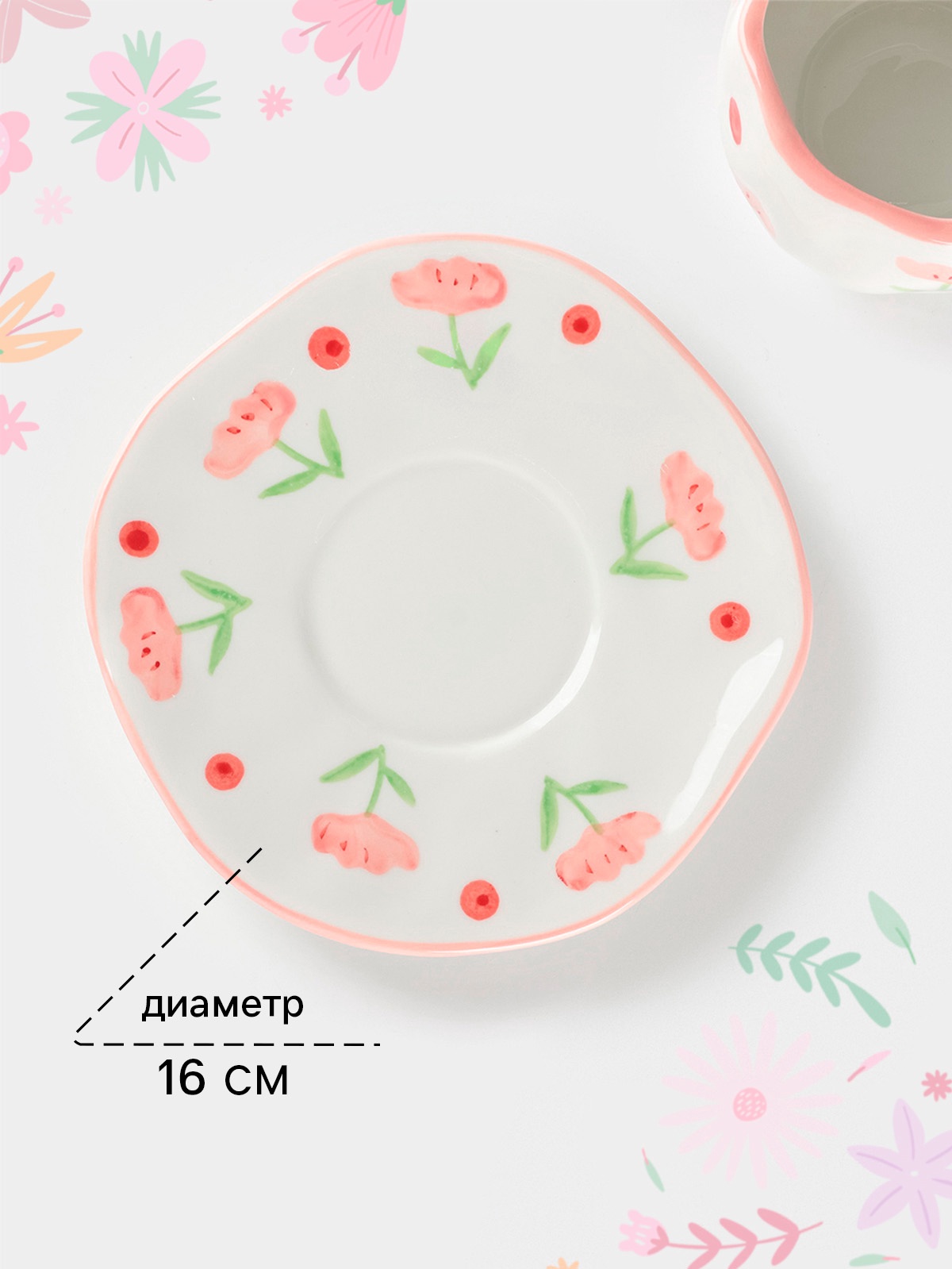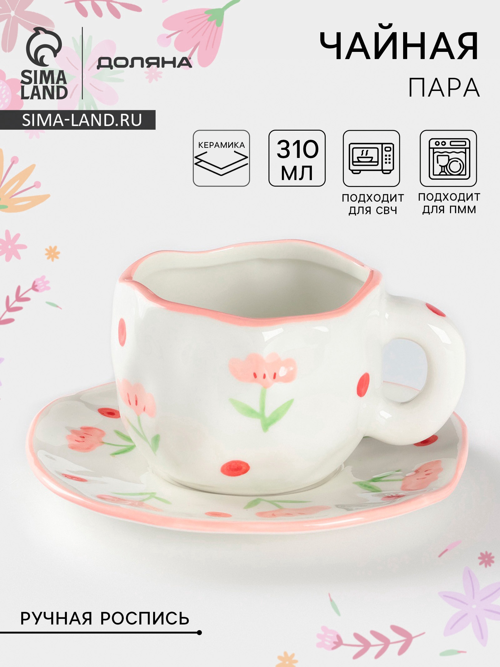 Чайная пара доляна «цветочная аллея», чашка 310 мл, блюдце D=16 см, ручная роспись, керамика, белая