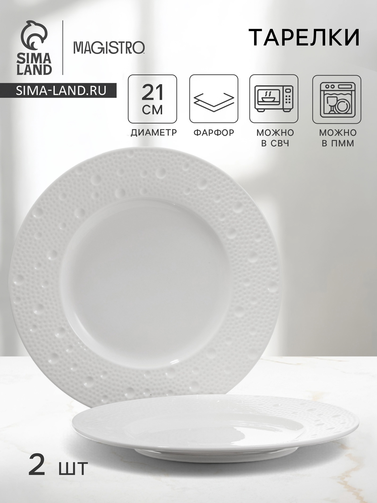 Тарелки Magistro Fray, набор 2 шт., D=21 см фарфор, белые