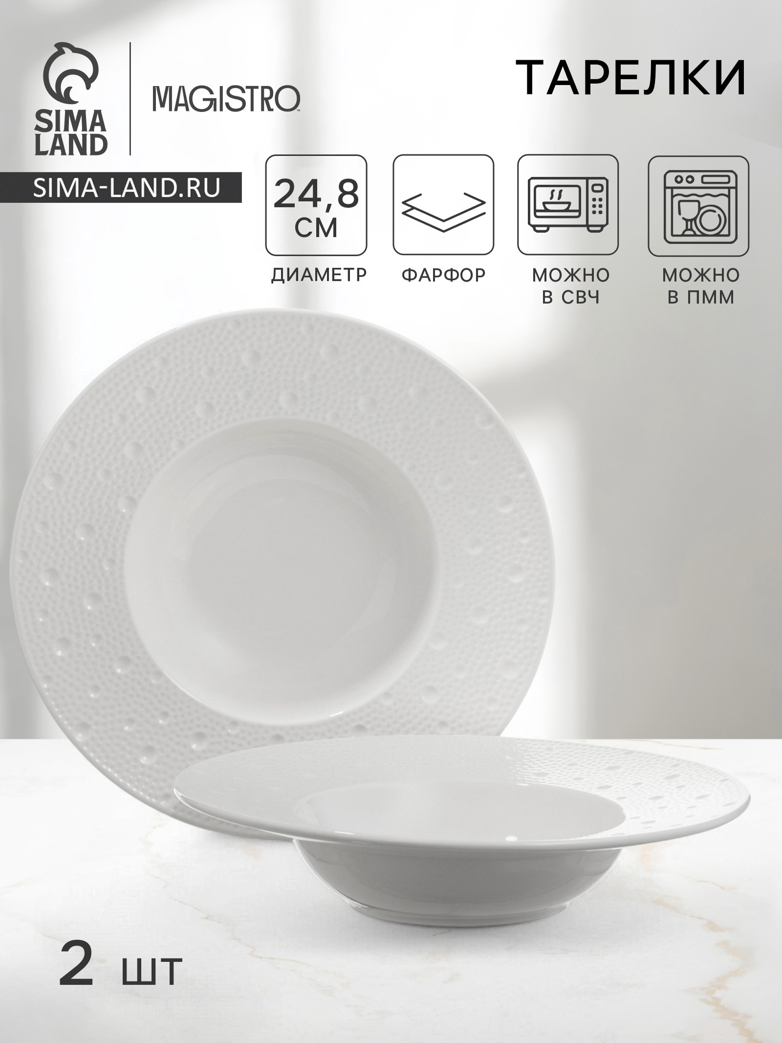Тарелки для пасты Magistro Fray, набор 2 шт., D=24.8 см, фарфор, белые
