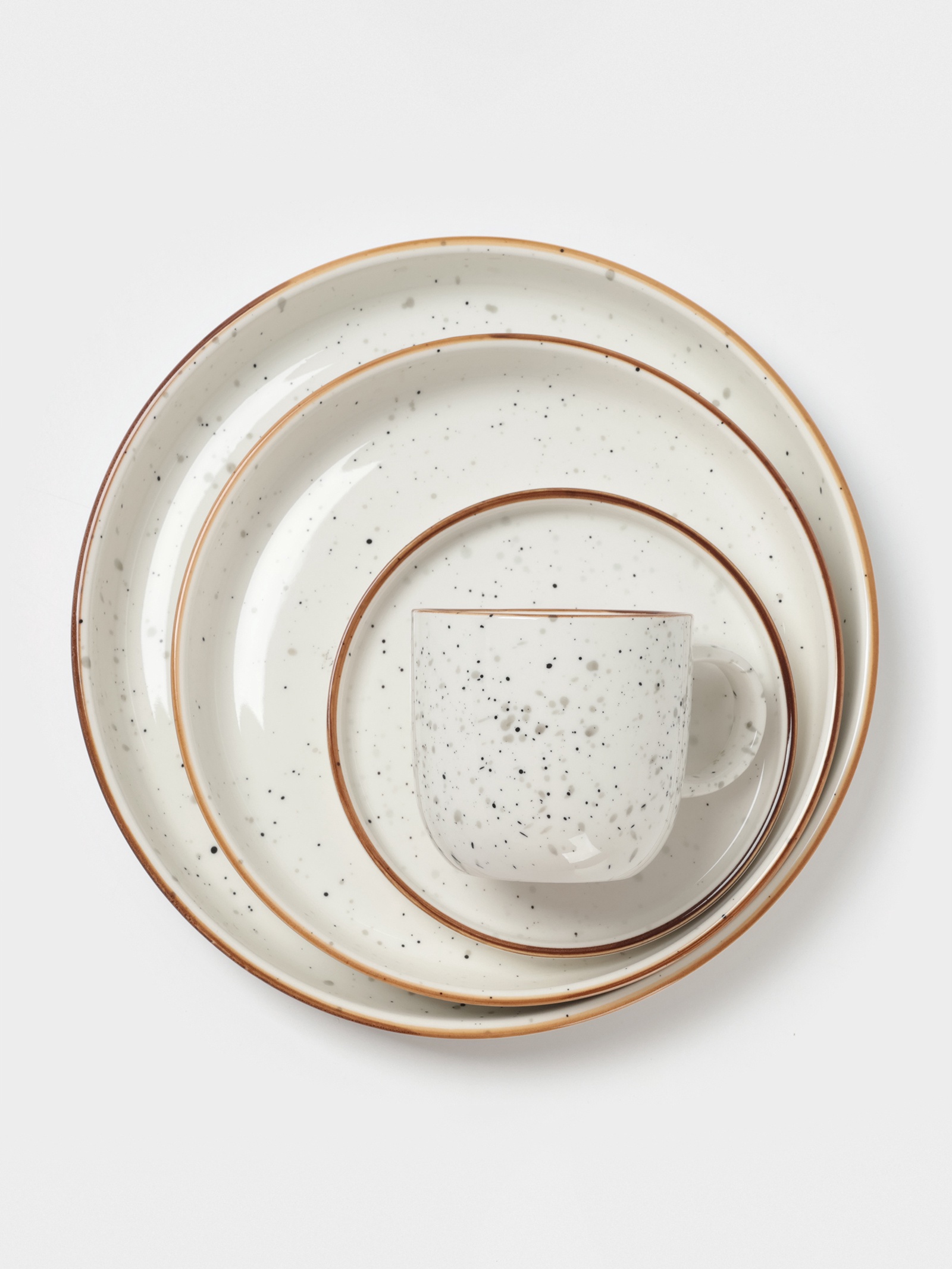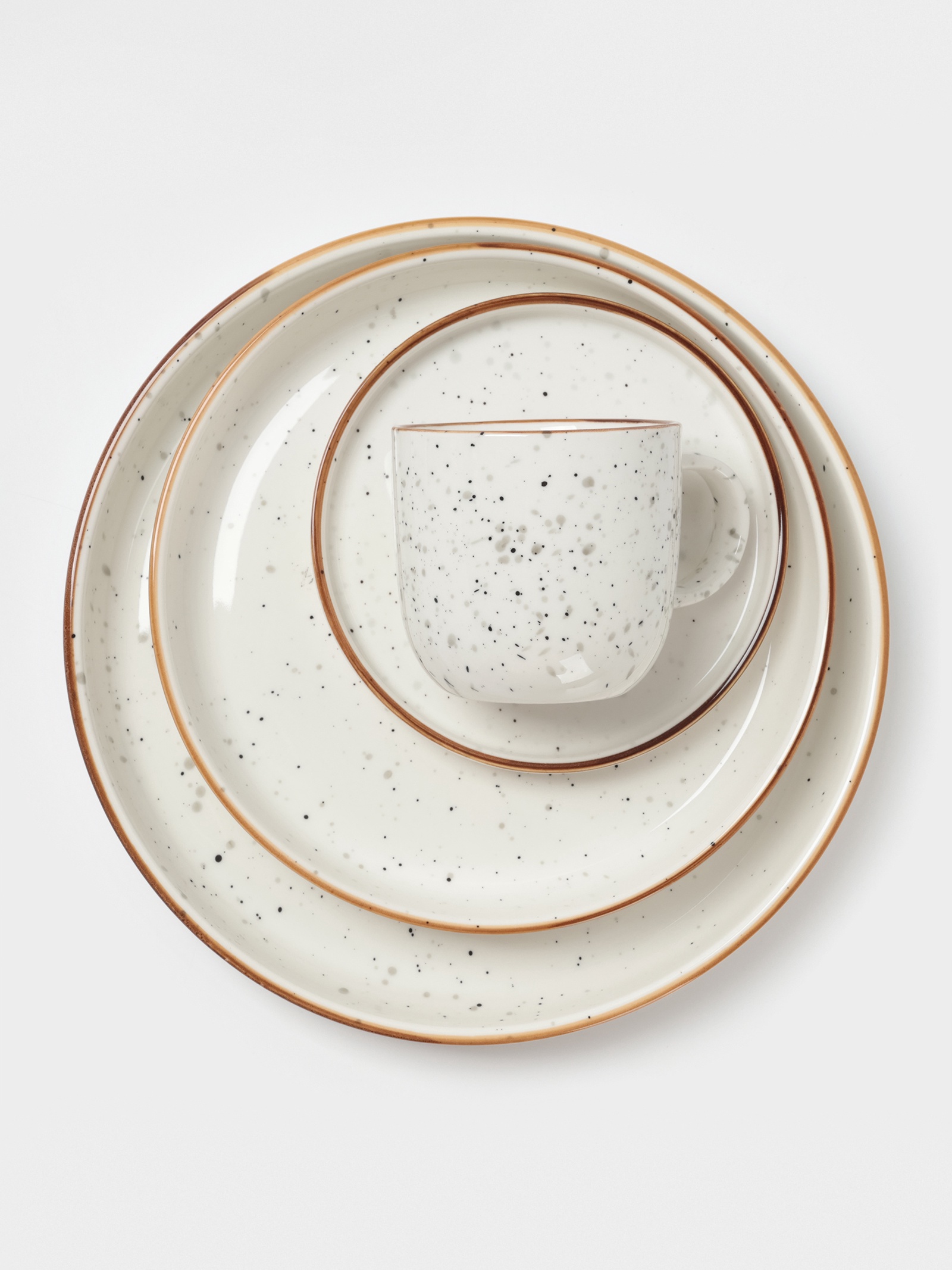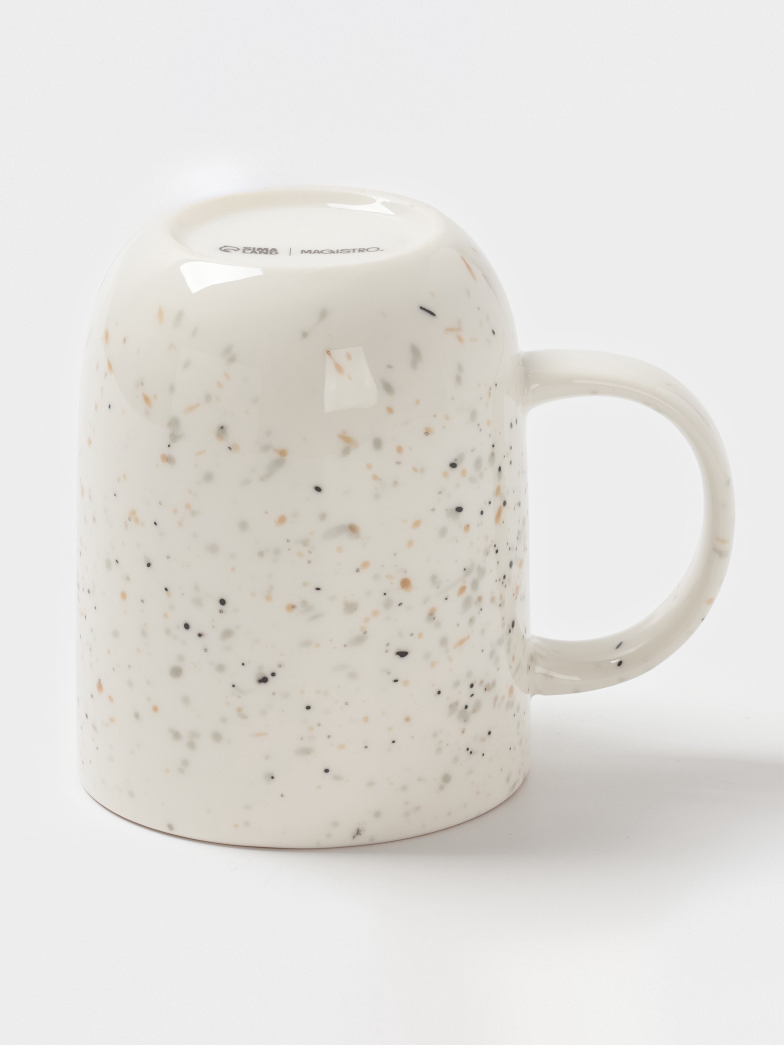 Объём 400 мл идеально подходит для чая, кофе или какао.Фарфоровая основа сохраняет тепло напитков дольше.Совместимость с микроволновой печью позволяет быстро согреть содержимое.Безопасность для посудомоечной машины экономит время на уходе.Гладкая текстура легко очищается от загрязнений.Минималистичный дизайн в крапинку добавляет утончённости.Удобство в деталях