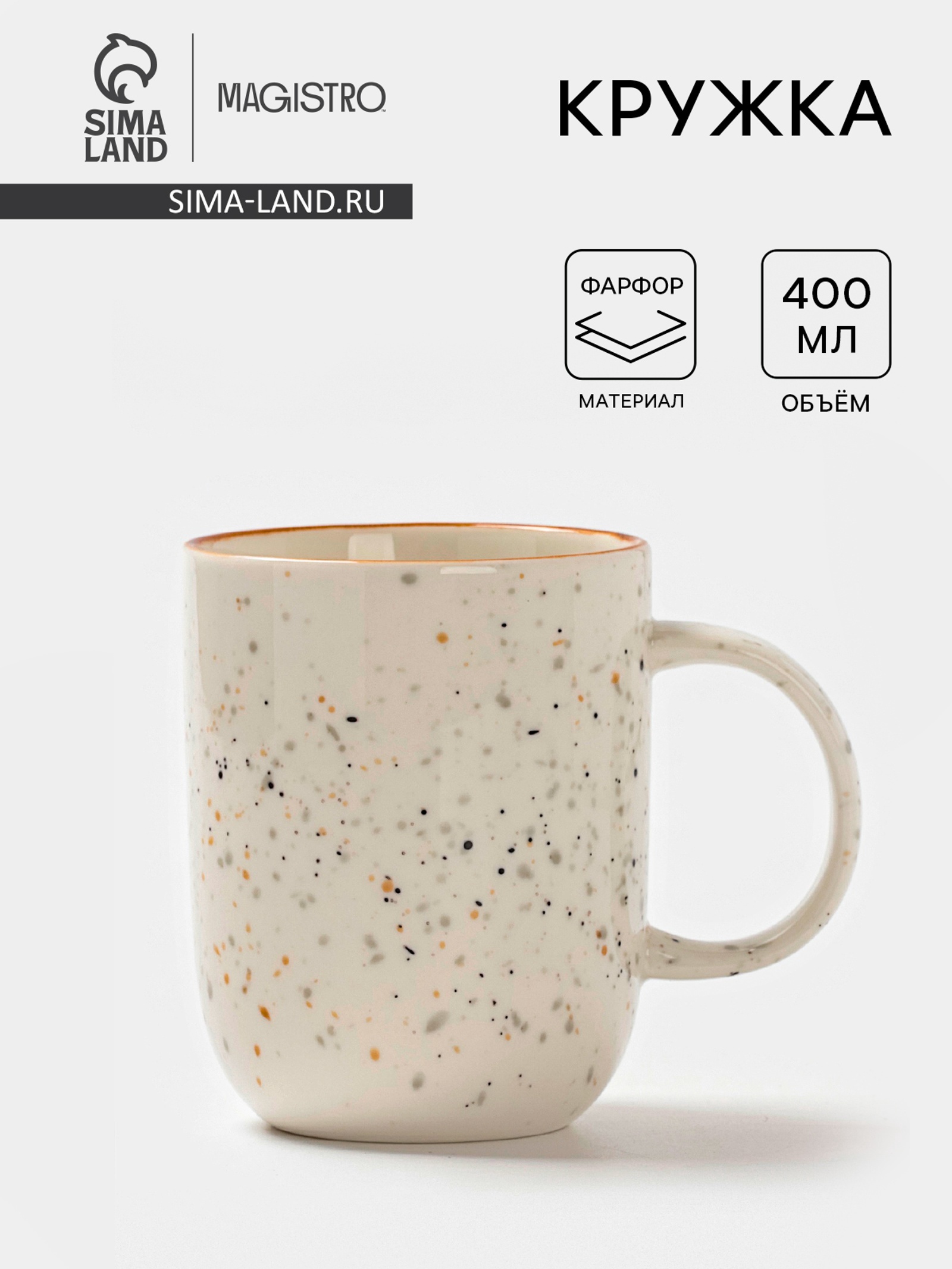 Белая фарфоровая кружка объёмом 400 мл станет вашим надёжным спутником в повседневной жизни. Её элегантный дизайн с тонким рисунком в крапинку и гладкая поверхность делают её универсальной для любого интерьера — от офисной кухни до домашнего стола.