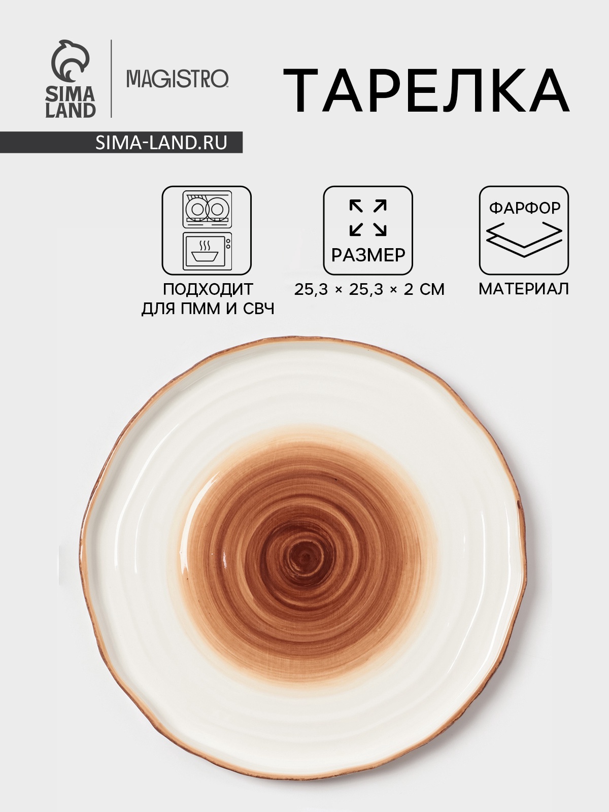Тарелка Magistro Wood, D=25.3 см, фарфор, коричневая