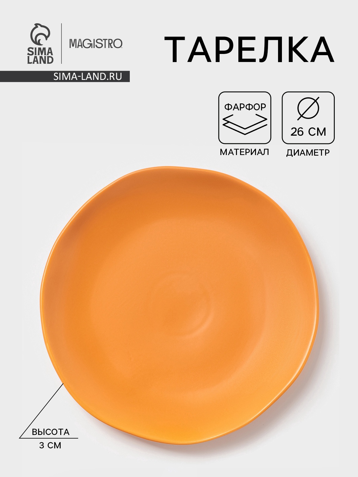 Тарелка Magistro Potter, D=26 см, фарфор, оранжевая