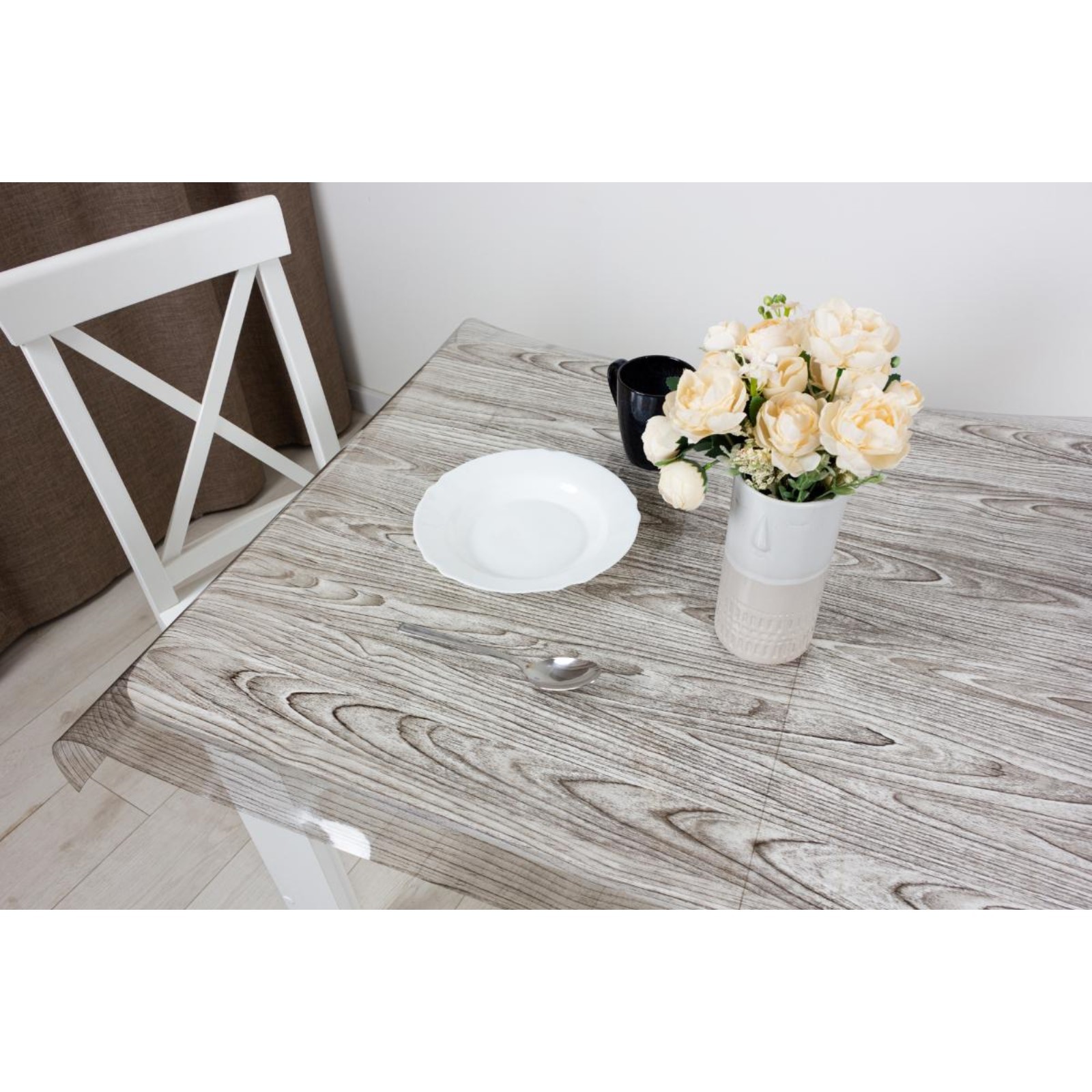 Клеёнка прозрачная Dasch, 0,8х20 м, толщина 0,6 мм, чёрное дерево