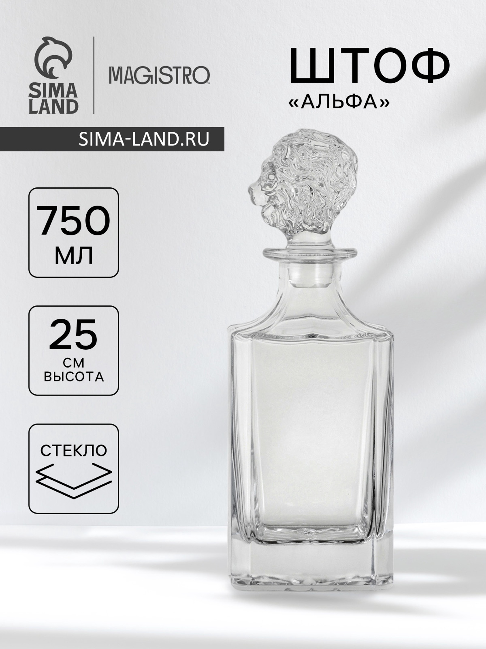 Штоф Magistro «альфа», 750 мл, 9.1 9.1 25 см, стекло, прозрачный