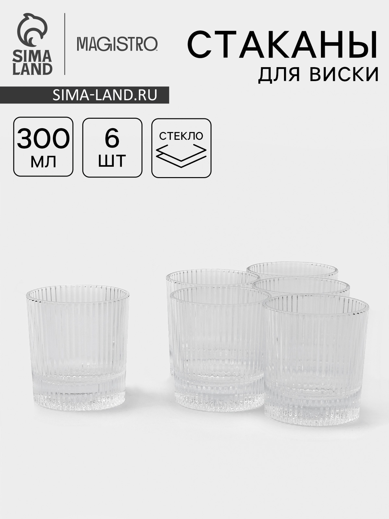 Стаканы для виски Magistro страйп , 300 мл, 8.75 9.25 см, набор 6 шт., стекло, прозрачные