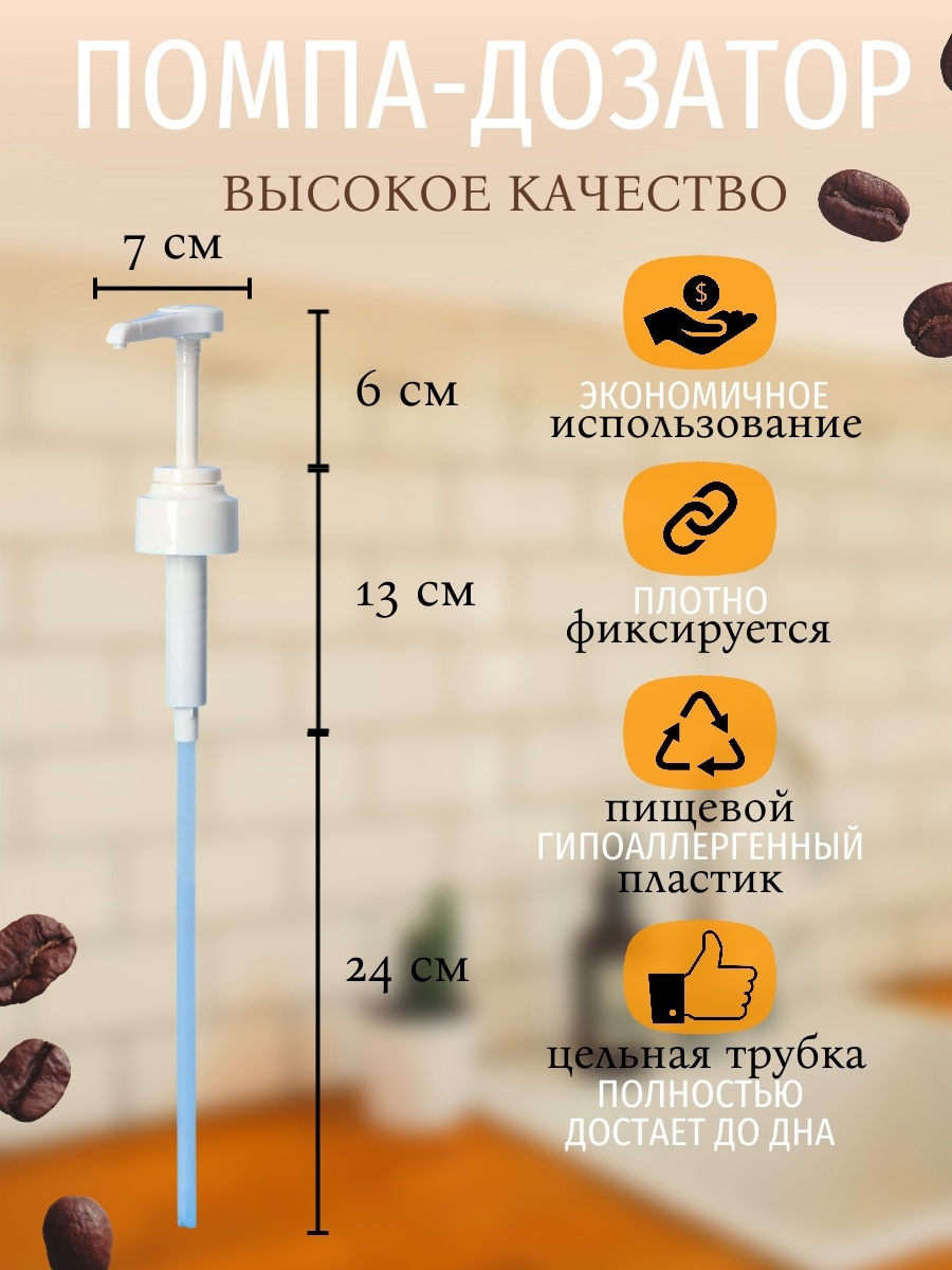 Набор помпа - дозатор для сиропа, белая, универкальная 3 шт., (31-32 мм), 10 мл. Набор помпа-дозатор для сиропа — это удобное и практичное решение для точного и аккуратного использования жидких ингредиентов, таких как сиропы, соусы и ароматизаторы. В состав набора входят три белых дозатора, которые совместимы с бутылками диаметром 31-32 мм. Каждый дозатор в этом наборе позволяет легко контролировать количество содержимого, что особенно важно при приготовлении коктейлей, десертов или напитков. Объем дозы составляет 10 мл, что делает использование помпы предельно простым и надежным. Это поможет избежать перелива и создаст аккуратность при подаче, что особенно ценится в профессиональной среде, а также в домашних условиях. Универсальный дизайн помпа-дозатора подходит для различных типов сиропов и жидкостей, а белый цвет придает современный и стильный вид. Эти дозаторы идеально подойдут как для баров и ресторанов, так и для домашнего использования. Они также станут отличным дополнением для мероприятий, где необходимо быстро и удобно подавать различные соусы и сиропы. Набор помпа-дозатор для сиропа — это незаменимый аксессуар для ценителей качественной кухни, который упрощает процесс приготовления блюд и напитков, обеспечивая идеальную порционность и удобство в использовании. Позаботьтесь о своем комфорте на кухне с этим практичным набором и наслаждайтесь легкостью в приготовлении вкусных угощений! Цвет: Белый parts count: 0 В наборе, шт.: 3 Материал: Пластик Продукты: Да Вид пробки: Пробка-дозатор  развернуть описание ▼