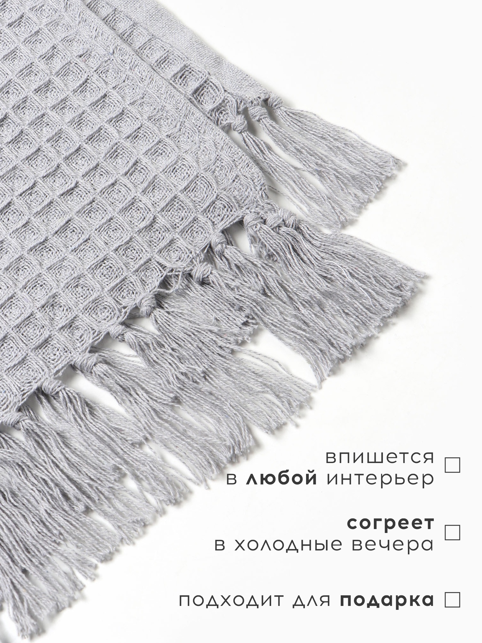 Плед вафельный «этель» 150 240 см, светло-серый, хлопок 100%, 350 г. Цвет:Серый|Ткань:Вафельное полотно|Плотность, г/м :350|Размер, см:150 х 240|Наличие рукавов:Нет|Тематика:Однотонная|Вид упаковки:Пакет|Декоративные элементы:Бахрома|Рекомендации по уходу:Не отбеливать|Рекомендации по уходу:Деликатная стирка при 30 °С|Рекомендации по уходу:Барабанная сушка при низкой температуре|Рекомендации по уходу:Глажка при 150 °С|Состав ткани:Хлопок|Размер постельного белья:1.5-спальное|Страна:Китай  развернуть описание ▼