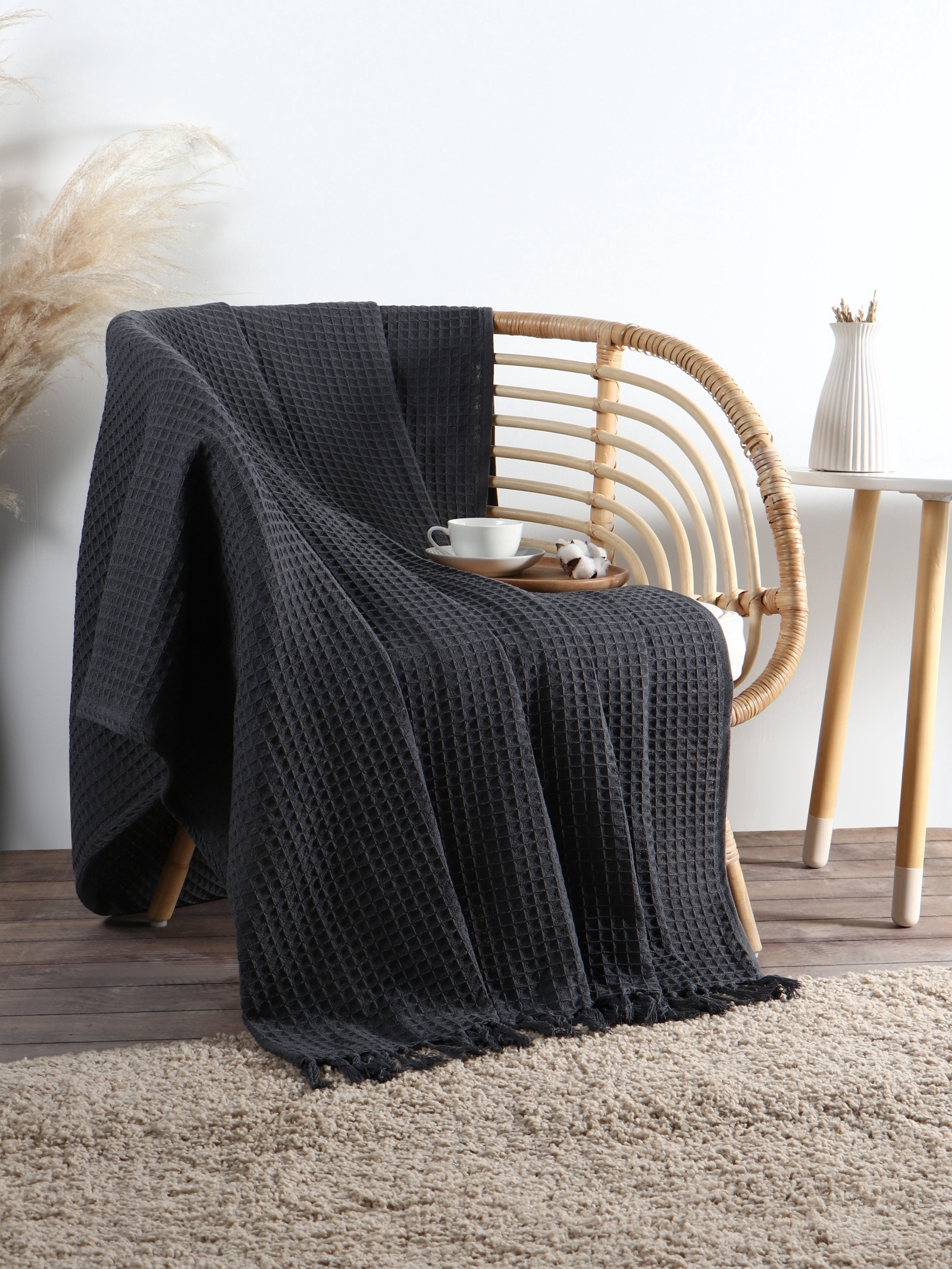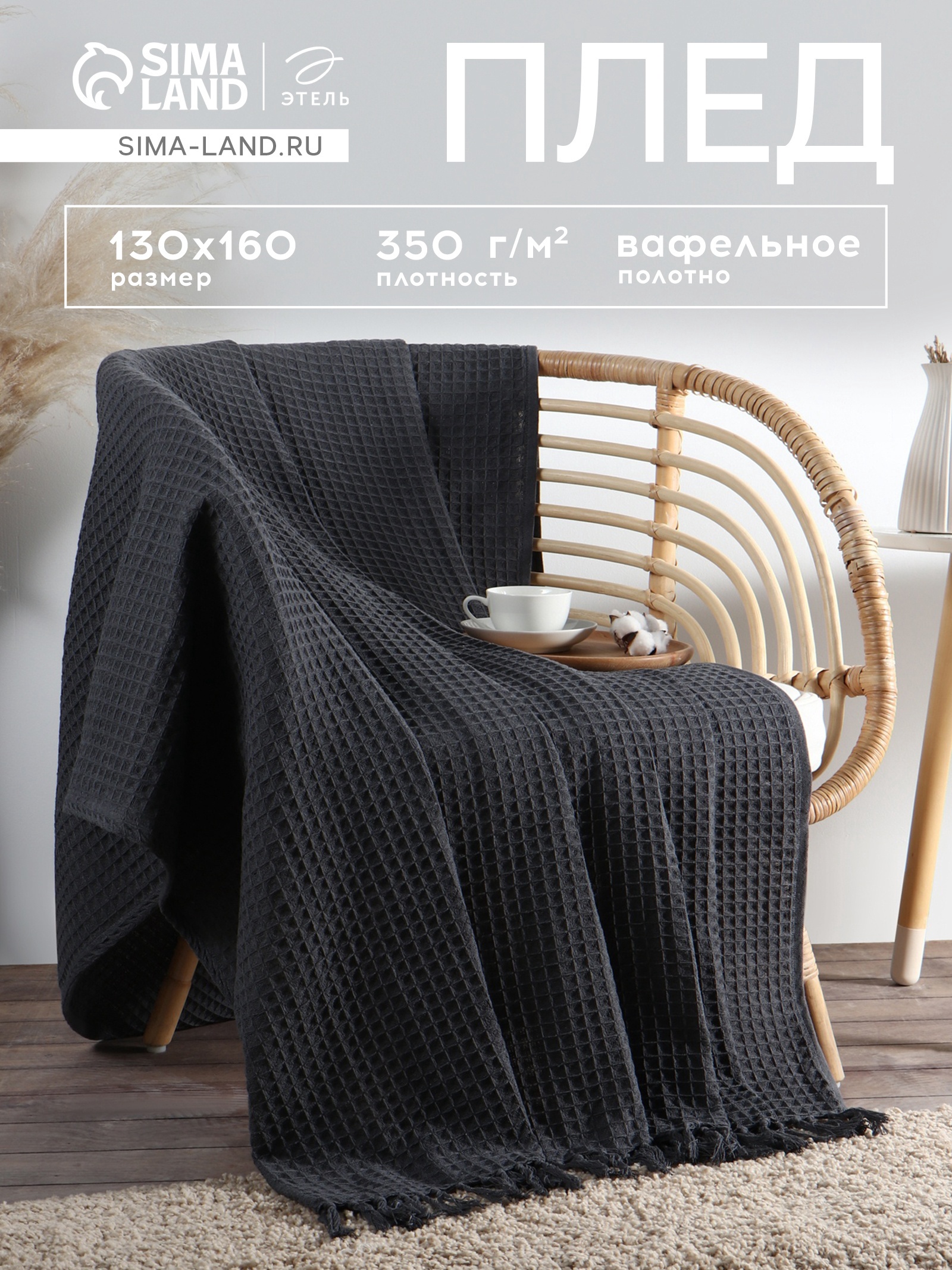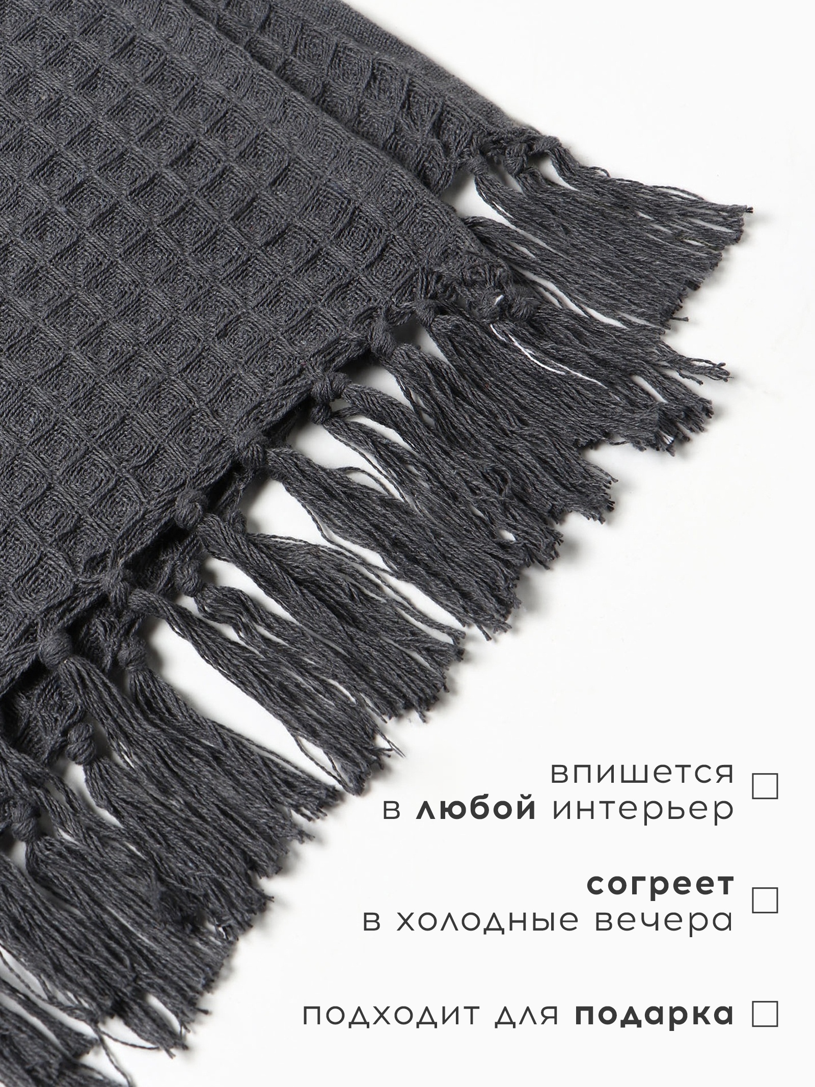 Плед с кисточками вафельный «этель», 130 160 см, серый, вафля 350 г