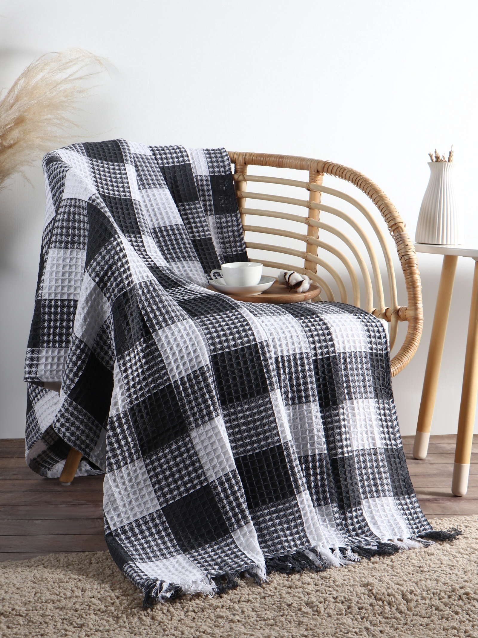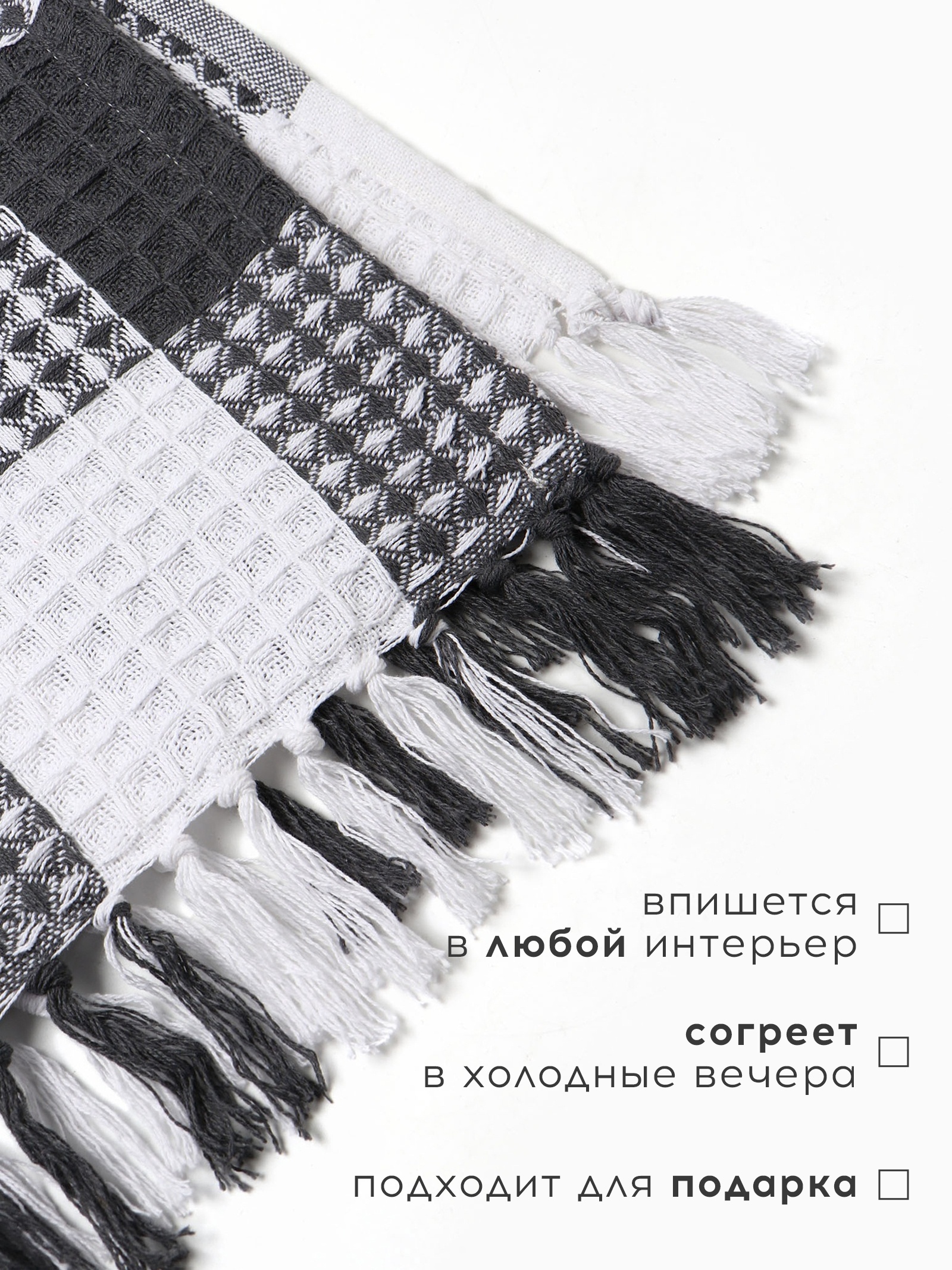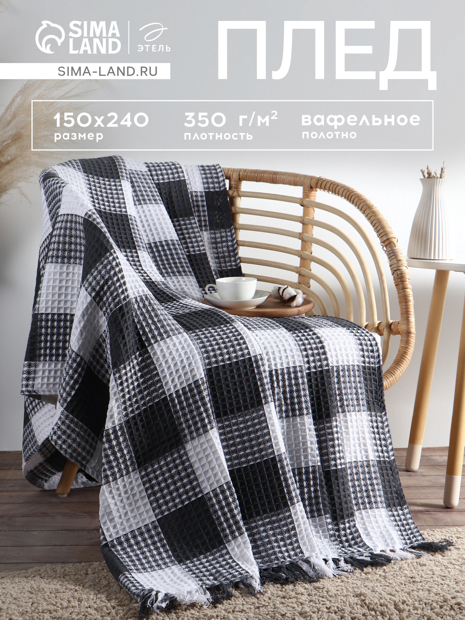 Плед вафельный этель «клетка» 150 240 см, серый, хлопок 100%, 350 г