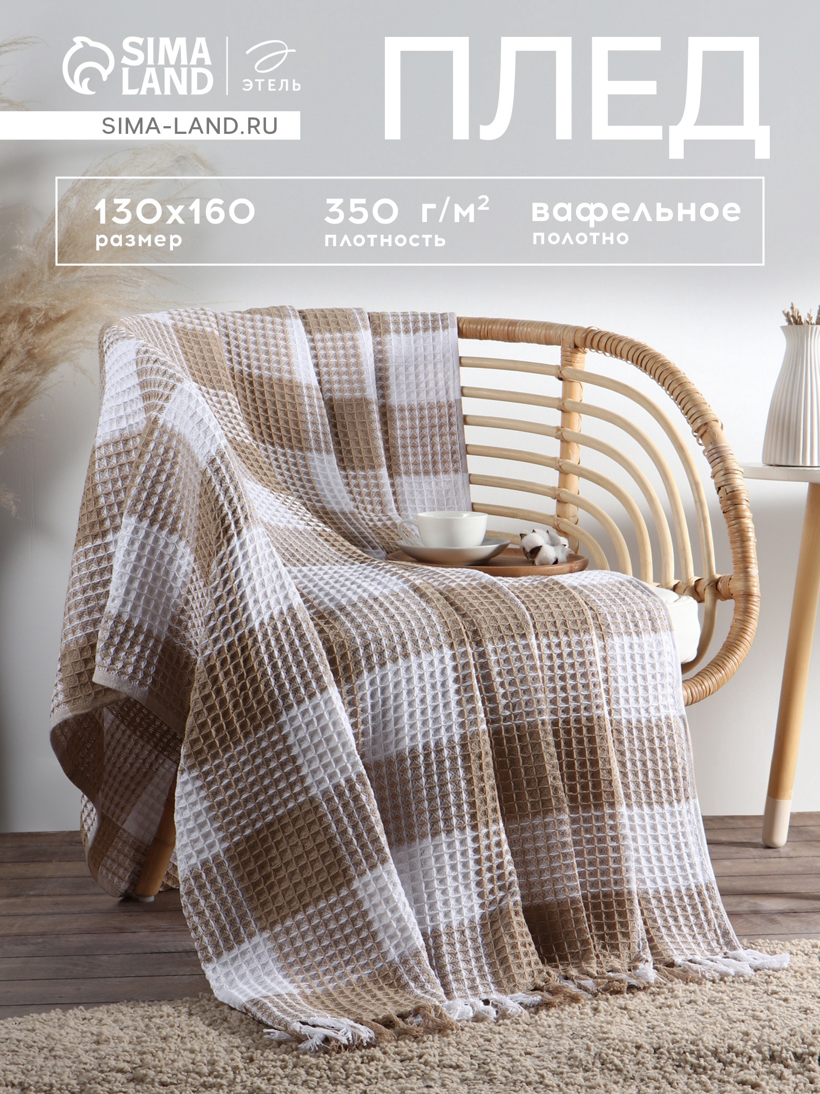 Плед с кисточками вафельный «этель. клетка», 130 160 см, бежевый, вафля 350 г. Цвет:Бежевый|Ткань:Вафельное полотно|Плотность, г/м :350|Размер, см:130 х 160|Наличие рукавов:Нет|Тематика:Клетка|Вид упаковки:Пакет|Декоративные элементы:Кисти|Рекомендации по уходу:Барабанная сушка при низкой температуре|Рекомендации по уходу:Глажка при 150 °С|Рекомендации по уходу:Не отбеливать|Рекомендации по уходу:Деликатная стирка при 30 °С|Состав ткани:Хлопок|Размер постельного белья:1.5-спальное|Страна:Китай  развернуть описание ▼