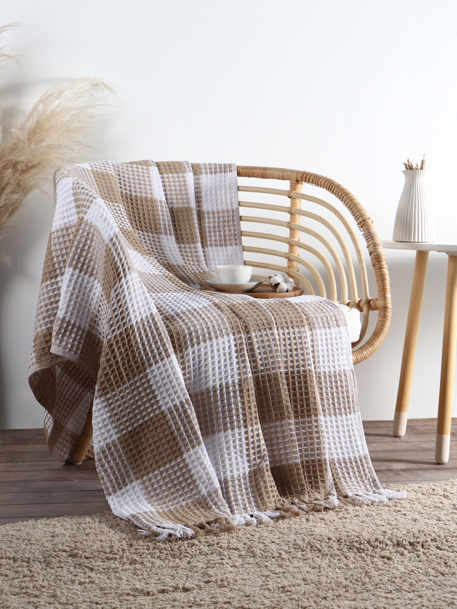 Цвет:Бежевый|Ткань:Вафельное полотно|Плотность, г/м :350|Размер, см:150 х 240|Наличие рукавов:Нет|Тематика:Клетка|Вид упаковки:Пакет|Декоративные элементы:Бахрома|Рекомендации по уходу:Глажка при 150 °С|Рекомендации по уходу:Не отбеливать|Рекомендации по уходу:Барабанная сушка при низкой температуре|Рекомендации по уходу:Деликатная стирка при 30 °С|Состав ткани:Хлопок|Размер постельного белья:1.5-спальное|Страна:Китай