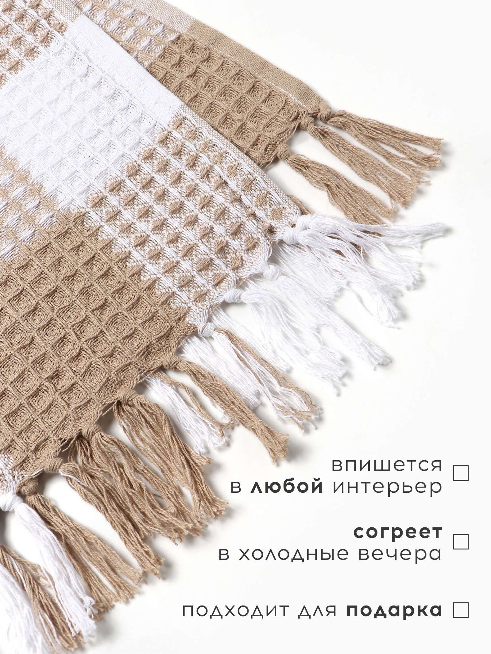 Плед вафельный этель «клетка» 220 240 см, бежевый, хлопок 100%, 350 г