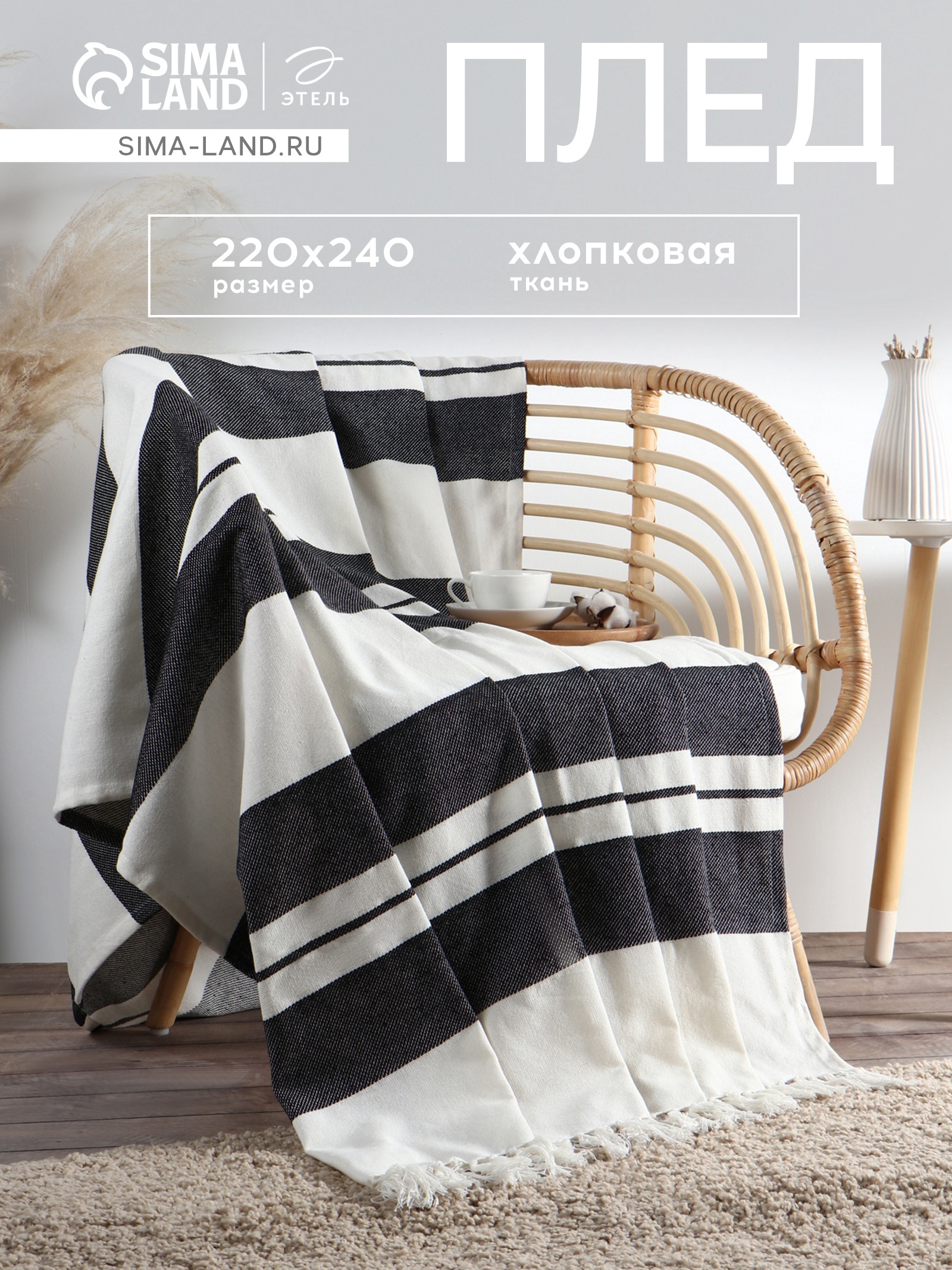 Плед этель «крупная полоса» 220 240 см, 100% хлопок