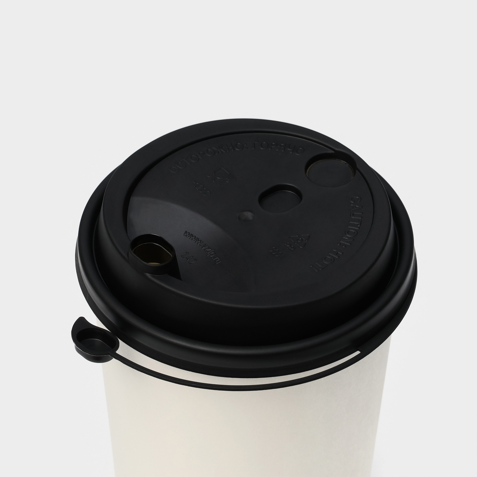 Крышка пластиковая одноразовая для стакана, с клапаном, питейником, D=9 см, цвет чёрный, 50 шт/уп