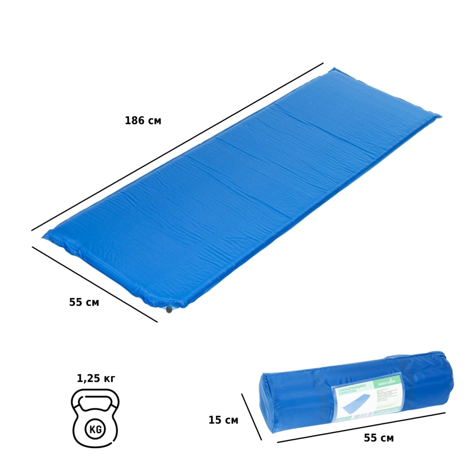 Коврик самонадувающийся green glade m1864. Самонадувающийся коврик - незаменимая вещь для кемпинга и путешествий. Внешний материал коврика выполнен из прочной и приятной на ощупь ткани, которая не скользит по поверхности. Внутри коврика находится вспененный полиуретан, который при открывании клапана наполняется воздухом. Удобный и простой в использовании, коврик не даст замерзнуть и сделает отдых более комфортным. В комплекте идет чехол для аккуратного хранения и переноски. Цвет: Синий Длина, см: 186 Ширина, см: 55 Толщина, мм: 4 Материал: Полиэстер Особенности: Надувные Вид: Коврики  развернуть описание ▼