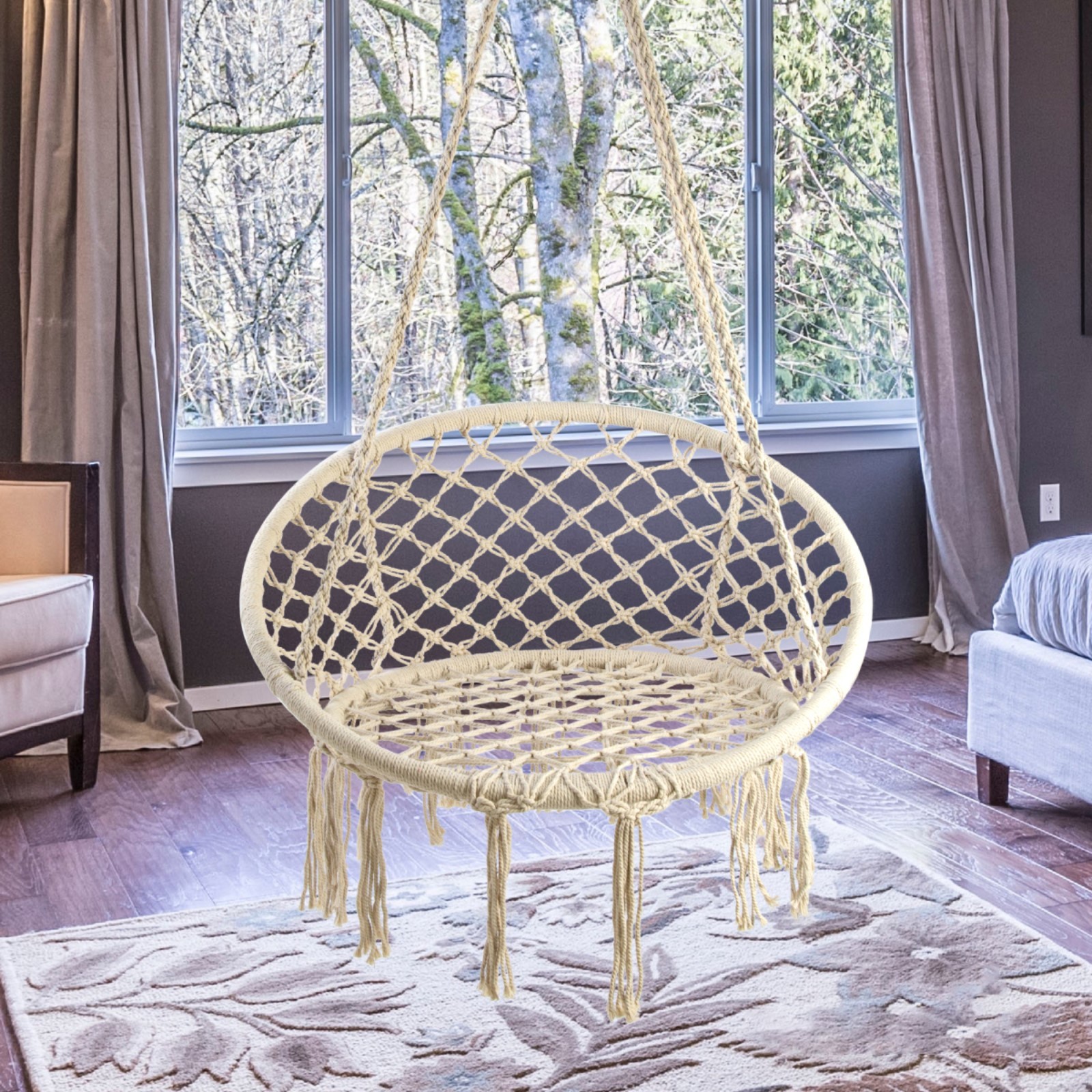 Подвесное кресло-гамак Green Glade – это гарантия отличного времяпровождения на свежем воздухе. В плетёном гамаке можно уютно расположиться с любимой книгой в руках, спрятаться от жары в тени деревьев и подремать. Гамак оборудован надежным крючком для крепления. Декоративные кисточки по периметру создают настроение игривости. Отдых в нем принесет Вам бодрый заряд энергией, снимет усталость и подарит море положительных эмоций.