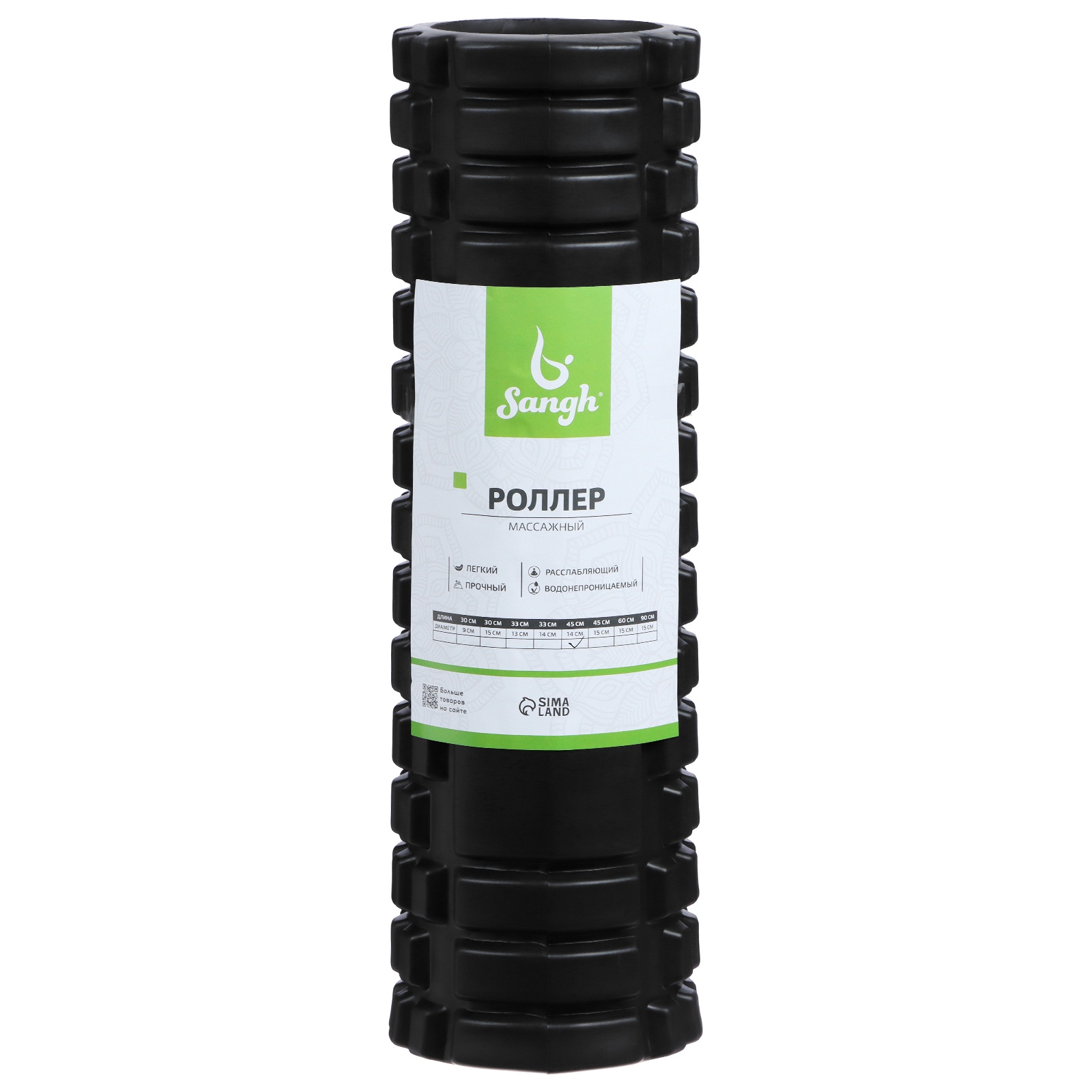 Ролик массажный sangh, 45х14 см, цвет чёрный.   Роллер для йоги — спортивный инвентарь, который помогает настроить мышцы на работу перед тренировкой, удерживать правильное положение тела во время неё и ослабить боль в мышцах и суставах после. Параллельно способствует восстановлению всего организма. Ролик позволяет практиковать миофасциальное расслабление (МФР). Использование изделия становится доступной альтернативой массажной терапии. Цвет:Чёрный|Диаметр, см:14|Длина, см:45|Страна:Китай  развернуть описание ▼